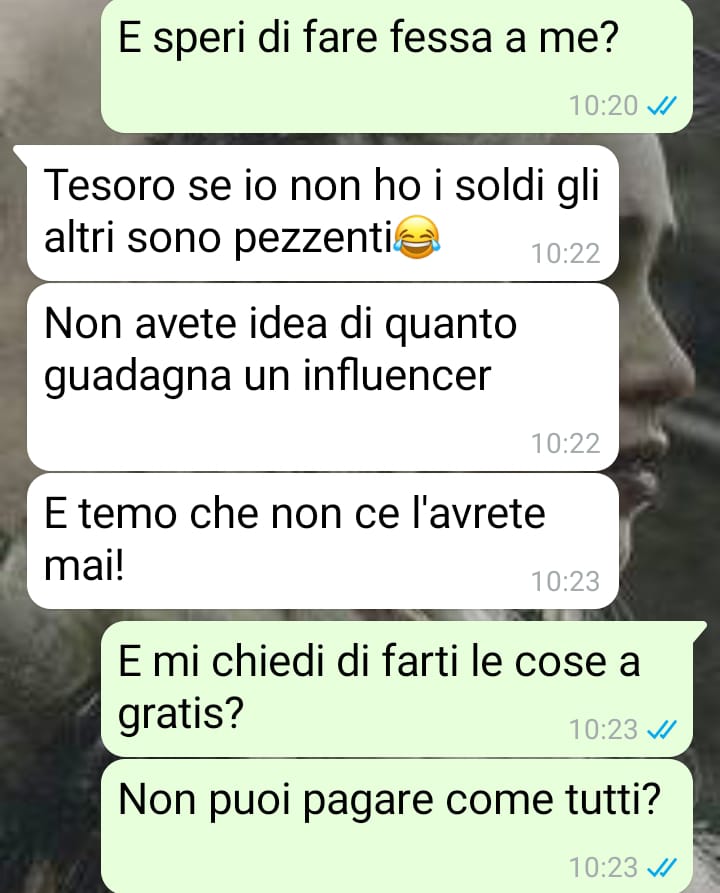 La risposta ricevuta l’ha profondamente colpita. Le parole dell’influencer, riportate dalla nostra amica, sono state percepite come una mancanza di rispetto verso il lavoro svolto con impegno e dedizione. Un atteggiamento che, agli occhi della nostra fan, sminuisce non solo il suo operato, ma anche i sacrifici fatti negli anni per mantenere viva e prospera un’attività costruita con fatica.