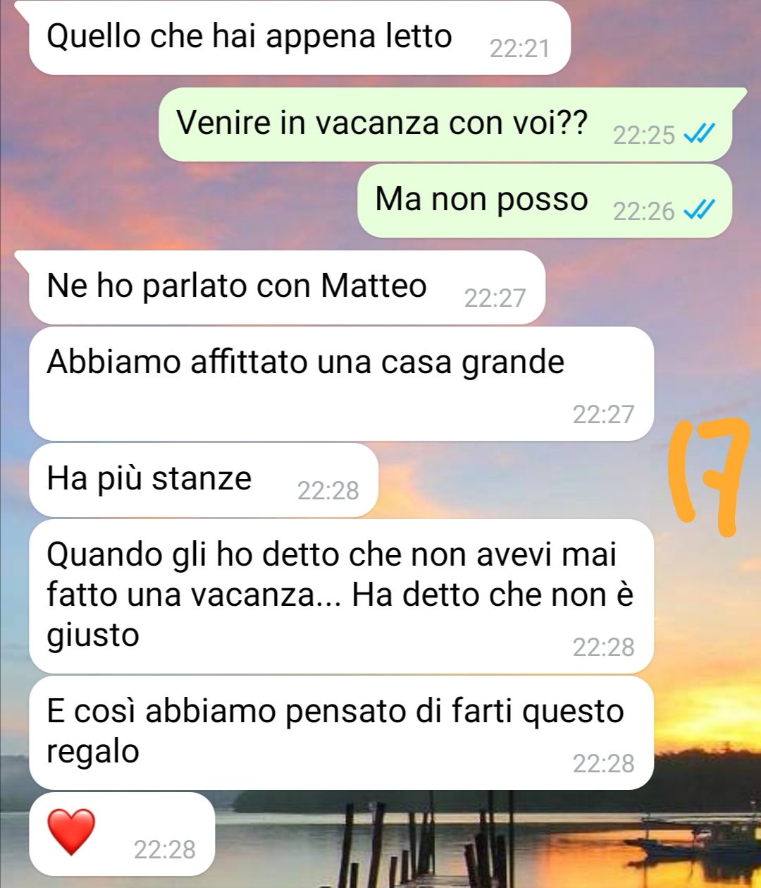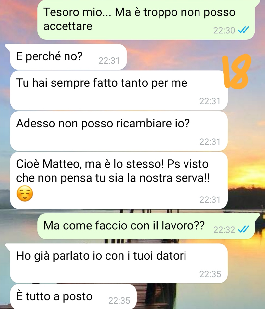 Con grande coraggio, Ada ha deciso di inviare questa chat alla redazione, mostrando una parte intima della sua storia. Un gesto che racconta quanto possa essere difficile, a volte, trovare il proprio spazio anche quando l’amore non è mai mancato.