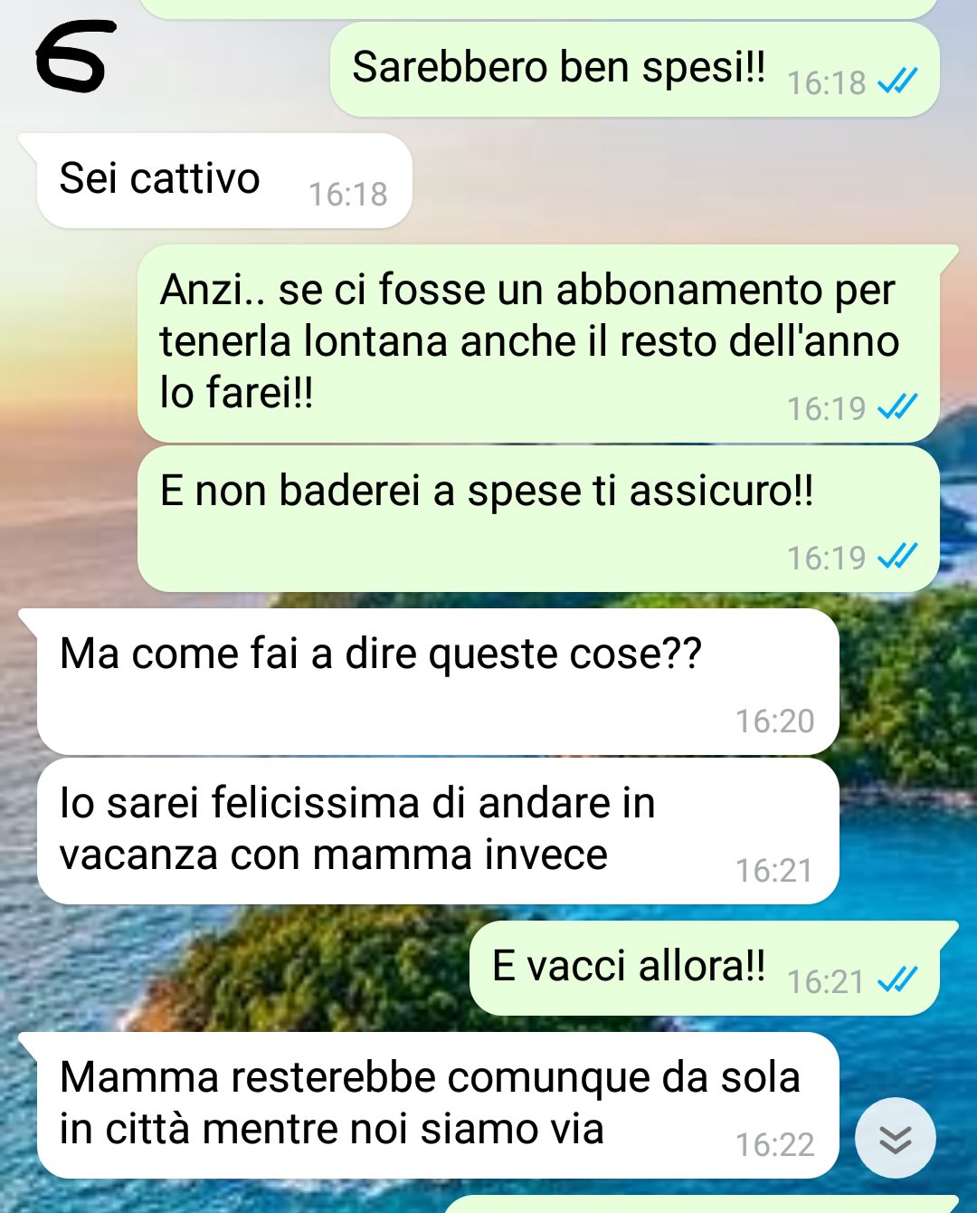 Anche Maria, secondo il nostro amico, è una brava moglie. Tuttavia, c’è un elemento che sta mettendo in seria difficoltà il loro rapporto: la madre di lei. La suocera viene descritta come una persona odiosa e fortemente manipolatrice. Il nostro fan è convinto che Maria, in molti aspetti della loro vita di coppia, subisca l’influenza della madre in modo evidente e quasi incontrollabile.