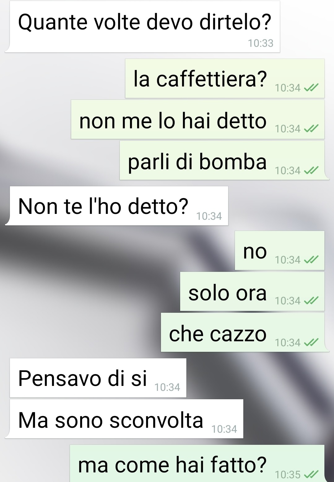 tutto è bene quel che finisce bene. Si dice così no? Ma questa storia mi ricorda mio padre, che dopo che si preoccupava per me a seguito di maldestra caduta, o perché rompevo qualcosa, una volta assodato che stavo bene voleva massacrarmi di botte! Ed è esattamente quello che vorrei fare con la mia fidanzata. Viene a stare da me nei fine settimana e il lunedi la lascio a dormire e vado a lavorare. Stamattina mi ha scritto e mi ha fatto prendere una paura terribile. Quasi quanto la sua. Un grave incidente domestico che poteva avere conseguenze terribili. E tutto perché dice che il caffe ormai le fa bruciare lo stomaco. Quindi ha deciso di provare con l’orzo. Il procedimento di preparazione dovrebbe essere uguale. Ma non importa, ci sono le istruzioni. E lei quelle ha seguito. Alla lettera. È viva per miracolo, ma quante bastonate che si meriterebbe…