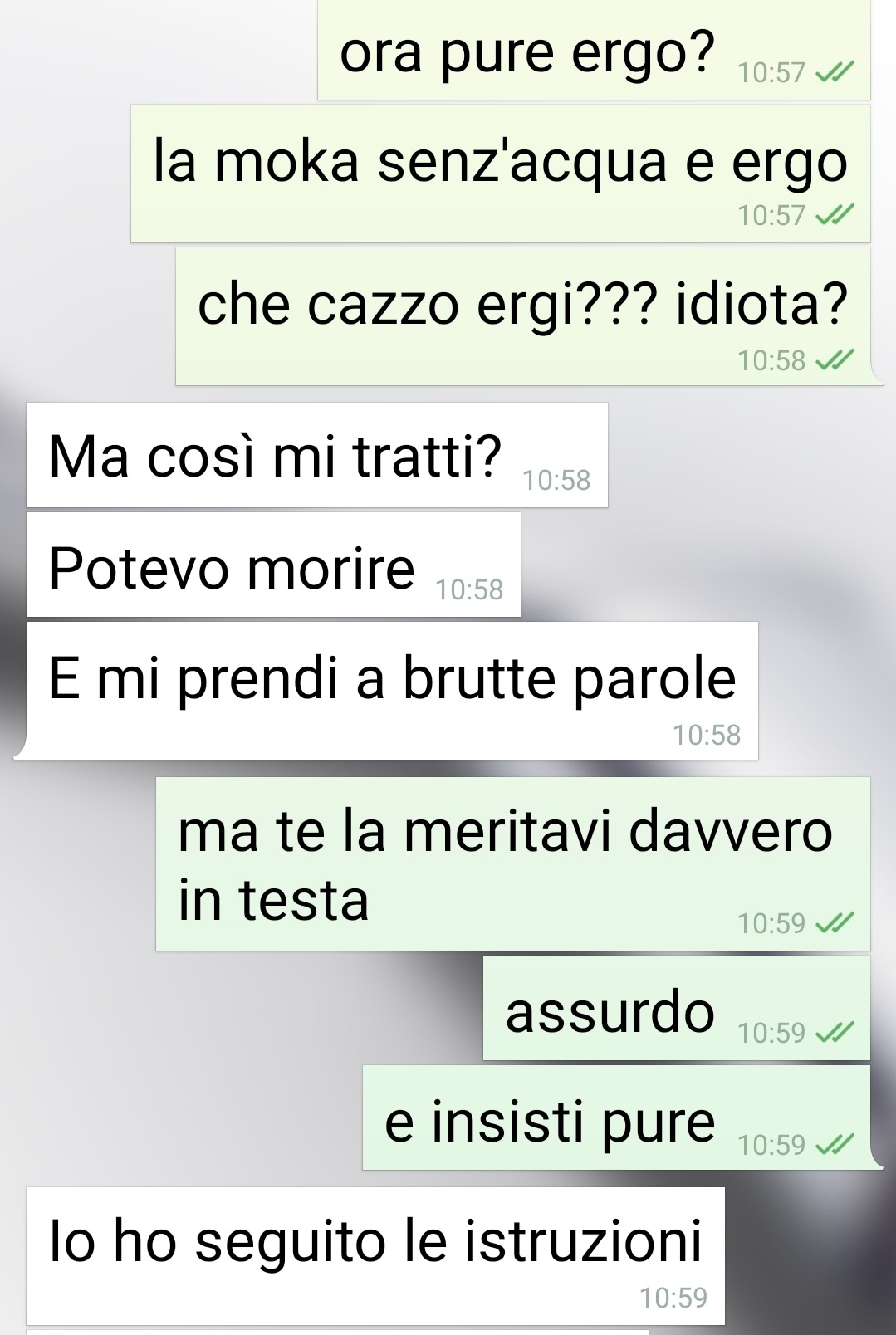 Nel racconto emerge un mix di sollievo e rabbia: la ragazza è scampata al peggio, ma il nostro follower non nasconde una reazione emotiva molto forte, espressa con parole dure. Paragona la sua reazione a quella estrema del padre, arrivando a confessare un desiderio violento che tuttavia pronuncia come sfogo emotivo. Nel testo traspare la fatica di gestire la paura, la memoria di vecchie sofferenze e la difficoltà a mantenere calma e misura di fronte a un evento che ha potuto provocare danni gravi.