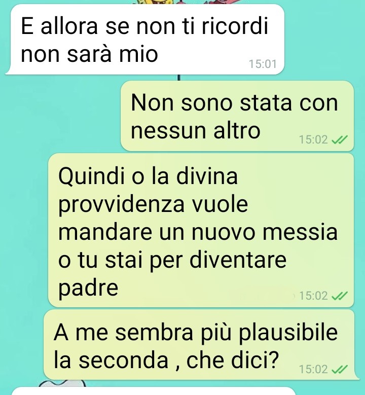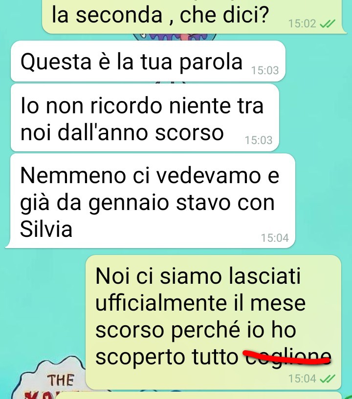La nostra fan racconta una situazione complessa e carica di emozione che sta vivendo in questo momento. È incinta del suo ex ragazzo, con cui si è lasciata da poco tempo. La scoperta della gravidanza è avvenuta quasi per caso: non essendo mai stata regolare con il ciclo mestruale, non si era accorta subito della gravidanza, ma a seguito di un malessere si è rivolta al ginecologo e ha ricevuto la notizia.