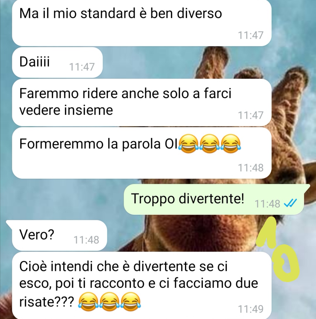 Una mattina, però, succede qualcosa di curioso: il collega la contatta con un messaggio dicendo che deve assolutamente raccontarle una cosa. Senza aggiungere dettagli, le invia direttamente uno screenshot di una conversazione che aveva avuto poco prima. Da quel momento, la nostra follower si ritrova coinvolta in una sorta di gioco, dove il collega la invita a indovinare con chi ha avuto lo scambio di messaggi.