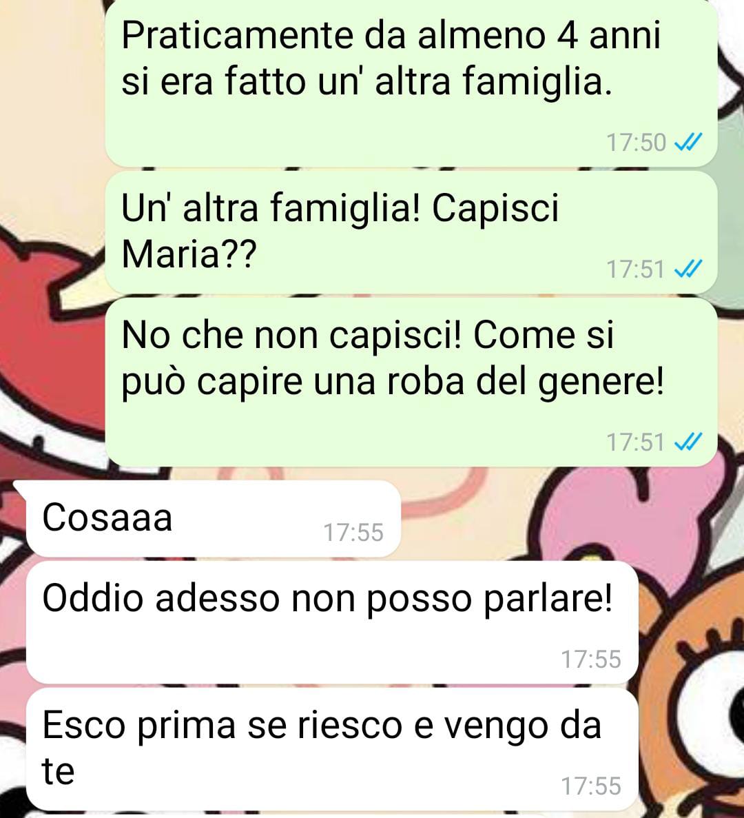 Voglio raccontarvi qualcosa di me e del posto in cui vivo. Da quattro anni abito in una casa indipendente fuori città, con giardino e una bella vista sulle montagne. Le case intorno sono simili alla mia, e in generale si sta bene: l’aria è pulita, non c’è rumore e posso lasciare le porte aperte senza preoccupazioni.Ovviamente ci sono dei lati negativi: ogni spostamento richiede la macchina, d’inverno è più complicato muoversi e il supermercato più vicino è a venti minuti di auto. Però apprezzo molto la libertà che offre questo posto, dove gli animali possono stare liberi e i bambini giocare all’aperto. Non è un paese così piccolo da conoscere tutti, se non di vista, ma le persone sono abbastanza amichevoli.Detto questo, non avrei mai pensato che potesse succedermi una cosa simile!Negli ultimi tempi, infatti, sono rimasta un po’ scossa per alcuni eventi. Ne ho parlato con Maria, una delle mie migliori amiche. Non ci sentiamo tutti i giorni, ma è la prima persona che chiamo quando succede qualcosa, perché riesce sempre a farmi vedere le cose da un’altra prospettiva e a schiarirmi le idee.Avete anche voi un’amica così? Eppure, questa volta, non mi è stata affatto di aiuto. Anzi, ha minimizzato la situazione! Ora capirete meglio leggendo la nostra conversazione.