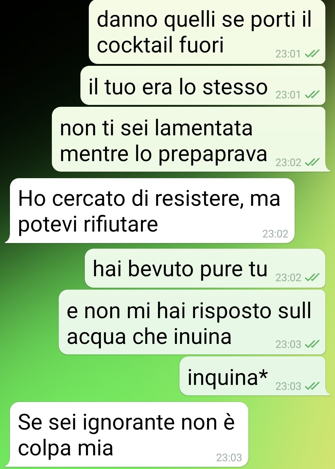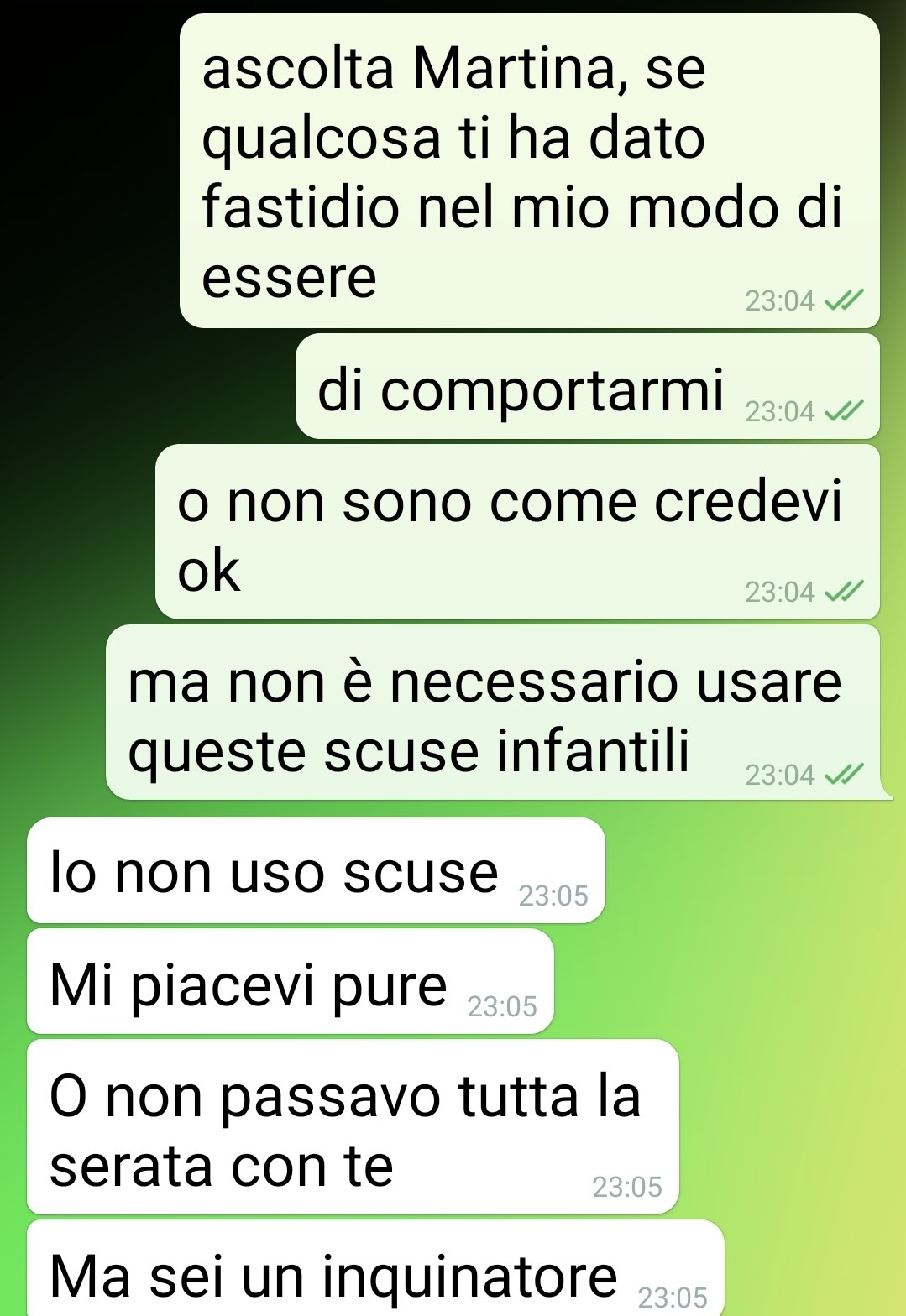 Conclude dicendo, non senza un po’ di amarezza mascherata da ironia, che forse è arrivato il momento di disinstallare l’app di incontri. Una serata che avrebbe dovuto essere piacevole si è trasformata in una storia tanto improbabile da sembrare inventata. E invece, come testimonia la chat allegata, è tutto vero.
