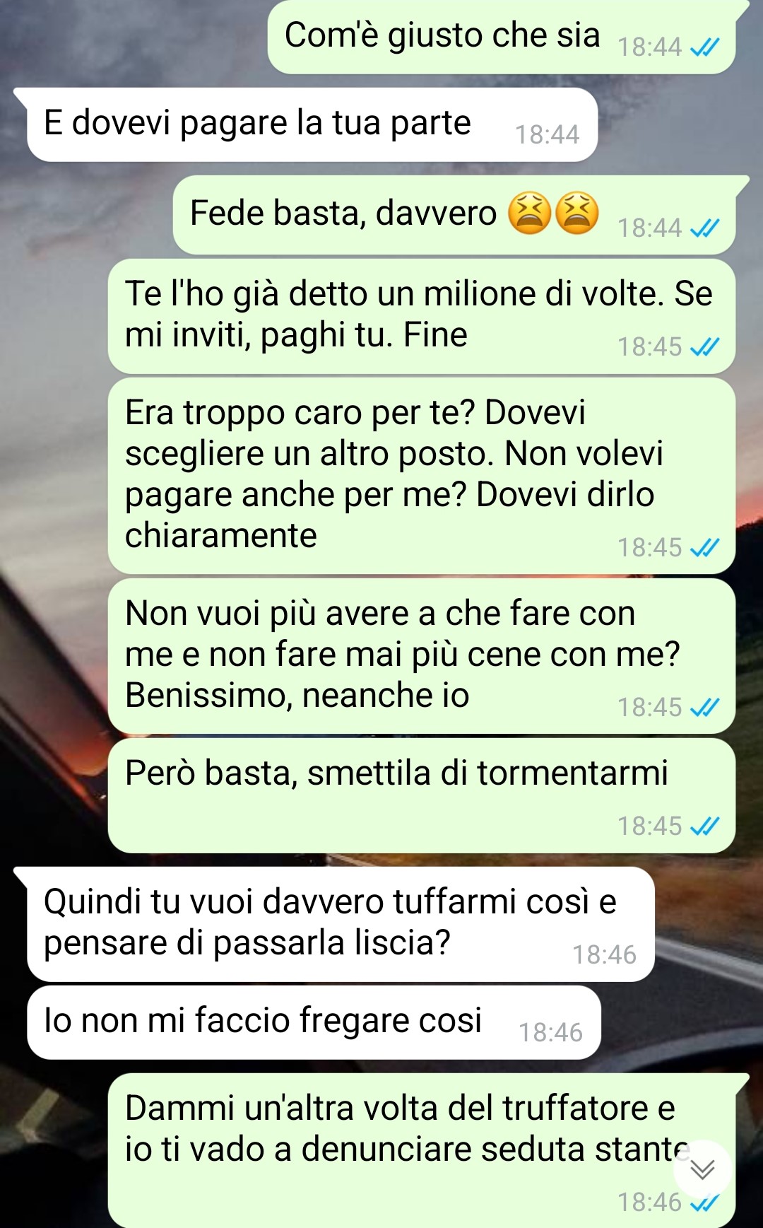 Qualche settimana fa, uno dei suoi colleghi – anche lui di nome Federico – lo ha invitato a cena in un ristorante piuttosto elegante. I due non erano particolarmente legati, non amici stretti, ma il collega aveva motivato l’invito con la necessità di discutere una questione di lavoro in modo riservato. Il nostro fan, accettando l’invito, ha ritenuto corretto considerarsi ospite, lasciando che fosse l’altro a occuparsi del conto.