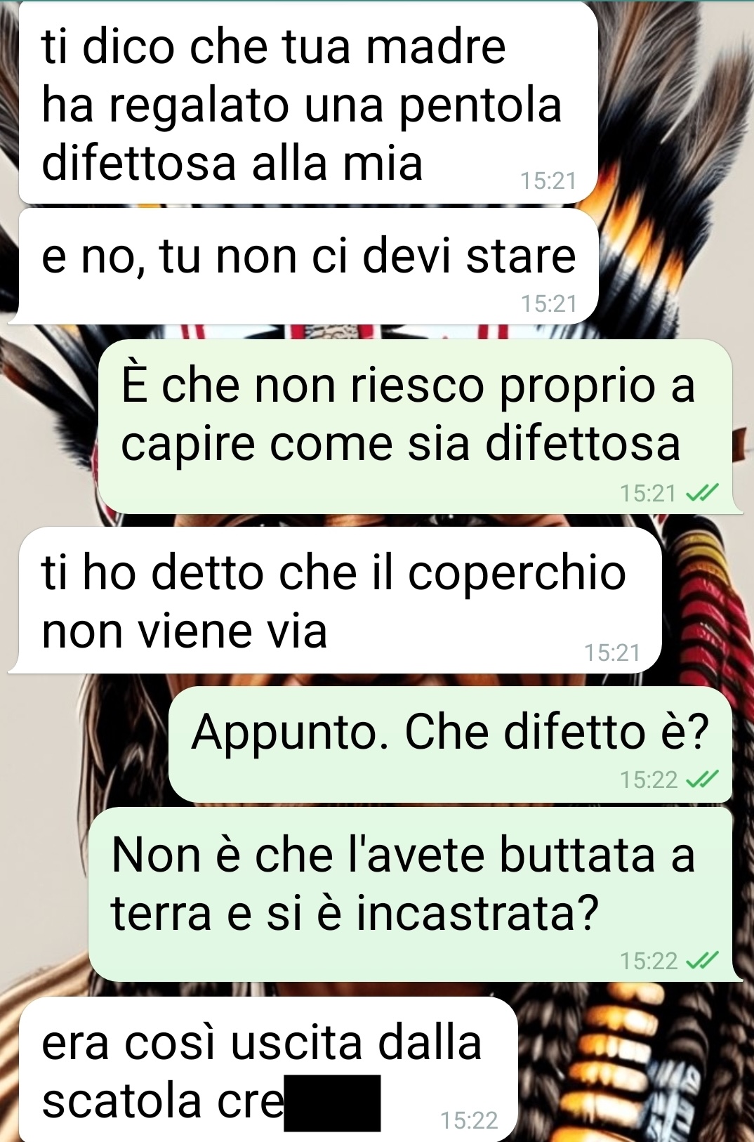 Il nostro fan racconta di una situazione che ha coinvolto la sua fidanzata e una pentola particolare. L’amico descrive con tono ironico la compagna come una persona di intelligenza superiore, sottolineando sarcasticamente le sue capacità intellettive rispetto alle proprie. Il follower specifica che la ragazza è laureata mentre lui ha conseguito solamente il diploma, evidenziando come questa differenza di istruzione si manifesti anche a livello familiare. Nonostante ciò, la fidanzata si è trasferita a casa sua, dettaglio che il nostro fan menziona en passant.