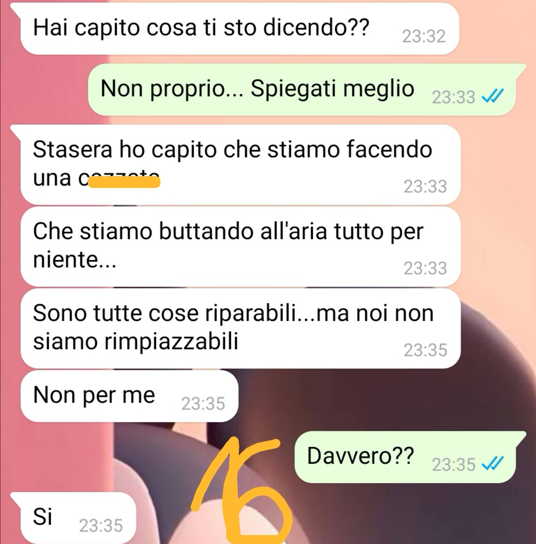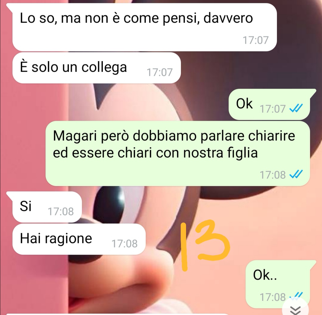 Da allora, i rapporti con Chiara si sono raffreddati. Il nostro amico riferisce che nelle ultime settimane si sono parlati appena, limitandosi alle comunicazioni indispensabili legate alla gestione della figlia. Proprio per questo motivo, quando l’altro giorno ha ricevuto un messaggio inaspettato da parte della ex compagna, è rimasto sorpreso.