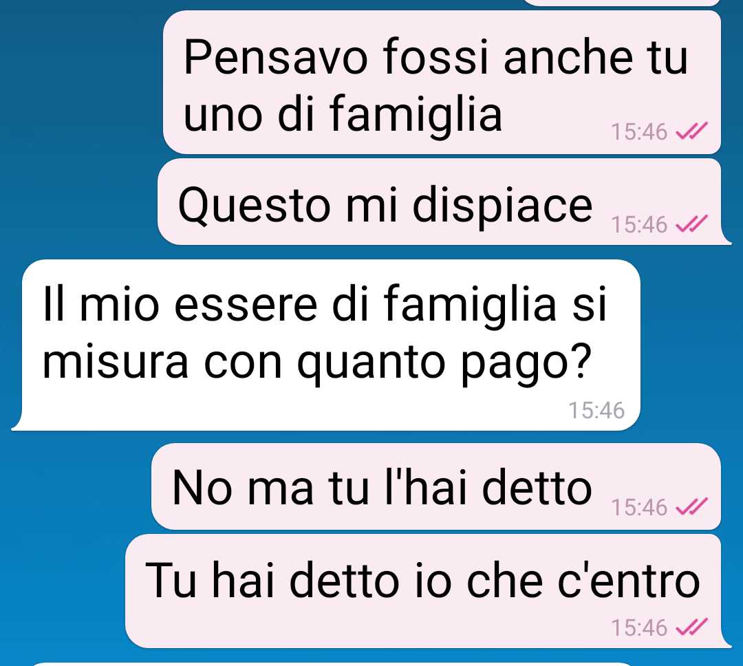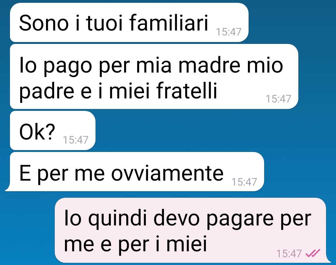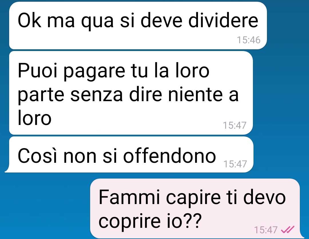 La nostra fan si trova ad affrontare una situazione inaspettata e imbarazzante che riguarda il suo fidanzato e una cena per il suo compleanno. Il ragazzo aveva organizzato un pranzo di compleanno in un ristorante di fascia medio-alta della città, invitando numerosi membri delle rispettive famiglie. All’evento hanno partecipato la sorella dell’amica, il cognato, la nipote, i genitori di lei e quelli di lui, oltre ai fratelli del festeggiato, creando una bella combriccola di persone.