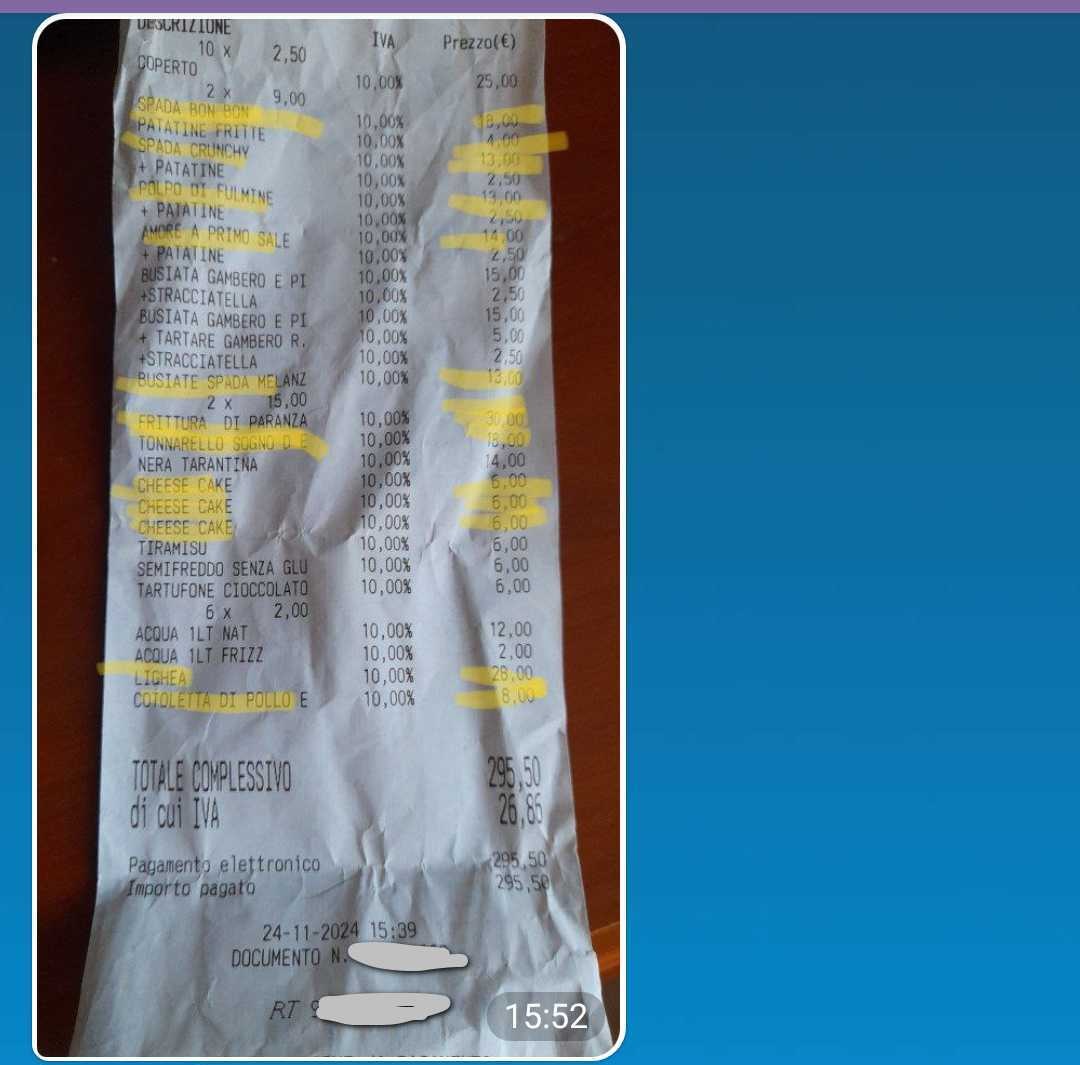 Il pranzo si è svolto in un locale elegante, anche se il servizio non è stato eccellente a causa dell’affluenza domenicale che aveva riempito tutti i tavoli, lasciando presumibilmente il personale di cucina sotto pressione. Nonostante questo, la famiglia ha trascorso una piacevole giornata insieme. Il conto finale è ammontato a 300 euro, una cifra consistente che equivaleva a circa 30 euro per persona, considerando il numero di invitati presenti.