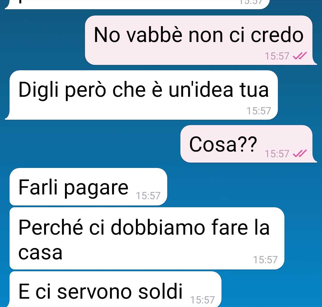 Successivamente al pranzo, il ragazzo ha fatto una richiesta che ha lasciato l’amica completamente sbalordita: ha chiesto alla famiglia di lei un rimborso per la spesa sostenuta. Questo comportamento ha colpito la nostra fan come un fulmine, facendola sentire molto strana e incredula di fronte a un atteggiamento che considera assurdo e mai visto prima. Ha persino condiviso le conversazioni per documentare quello che ritiene un comportamento fuori dal normale.