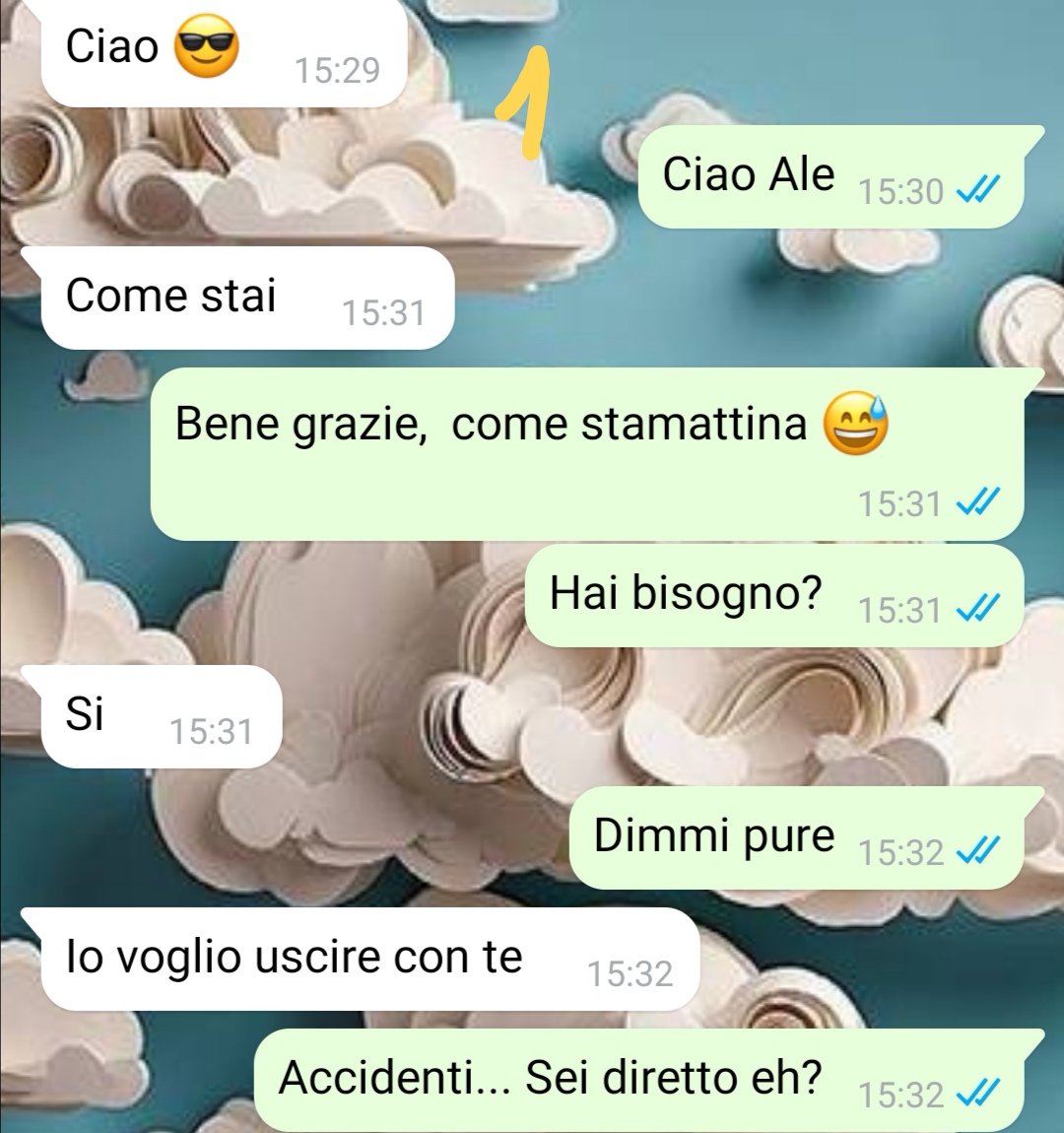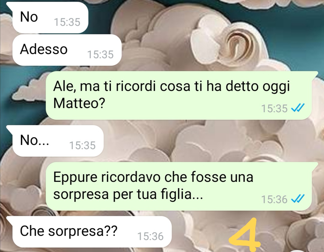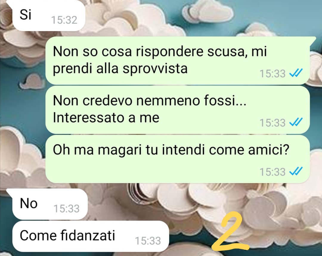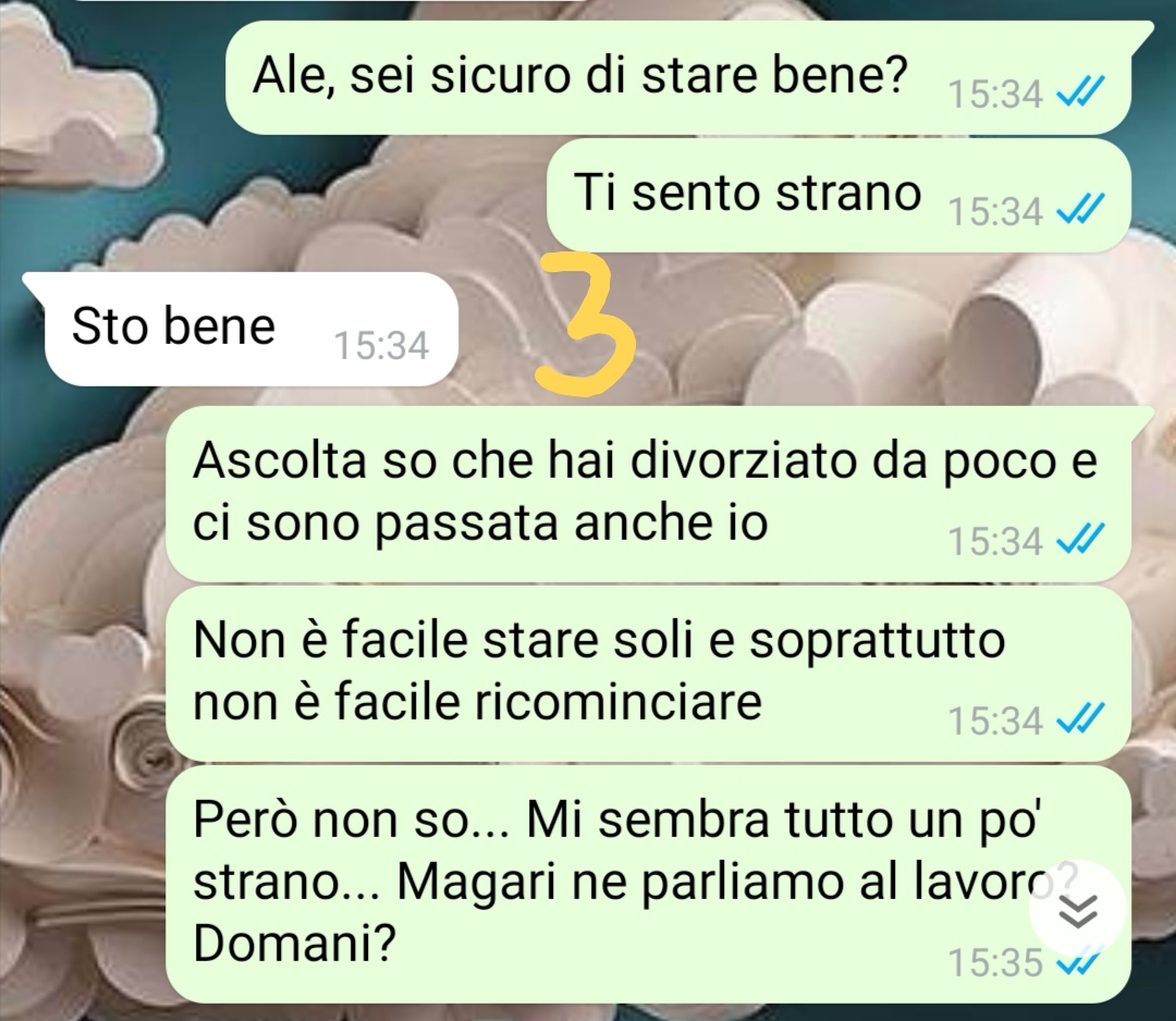 Ciao a tutti, mi chiamo Isabella e l’altro giorno, mentre facevo il trasferimento delle chat di WhatsApp tra il mio vecchio Android e il nuovo iPhone (spero di poterlo dire senza fare pubblicità 😂) mi sono ritrovata a rileggere una chat che risale a qualche tempo fa. Rileggerla mi ha riportata a un periodo della mia vita che non scorderò mai, un periodo in cui ero un po’ in stallo…un giorno però mi arriva un messaggio da parte di una persona che vi giuro non mi sarei mai aspettata. Una persona con la quale lavoravo da un paio d’anni, in due uffici vicini ma non avevamo mai collaborato direttamente. Però ci si vedeva in pausa, nei corridoi…insomma, ci conoscevamo anche se forse non benissimo. Io non stavo passando un gran periodo e sapevo che neanche questa persona stava bene. Non avevamo mai approfondito l’argomento però, non ce n’era mai stata occasione o forse non eravamo così in confidenza. Per questo il giorno in cui ricevo il messaggio rimango stupita. Anche perché proprio quella mattina ci eravamo visti e avevamo scambiato due chiacchiere parlando del più e del meno. … Ecco, la mia storia inizia così e ho pensato che potesse essere carino condividerla con voi. Magari chi leggerà sta passando un periodo simile al mio di quel momento e…non voglio scrivere altro se no rovino tutta la lettura. Grazie se la pubblicherete…