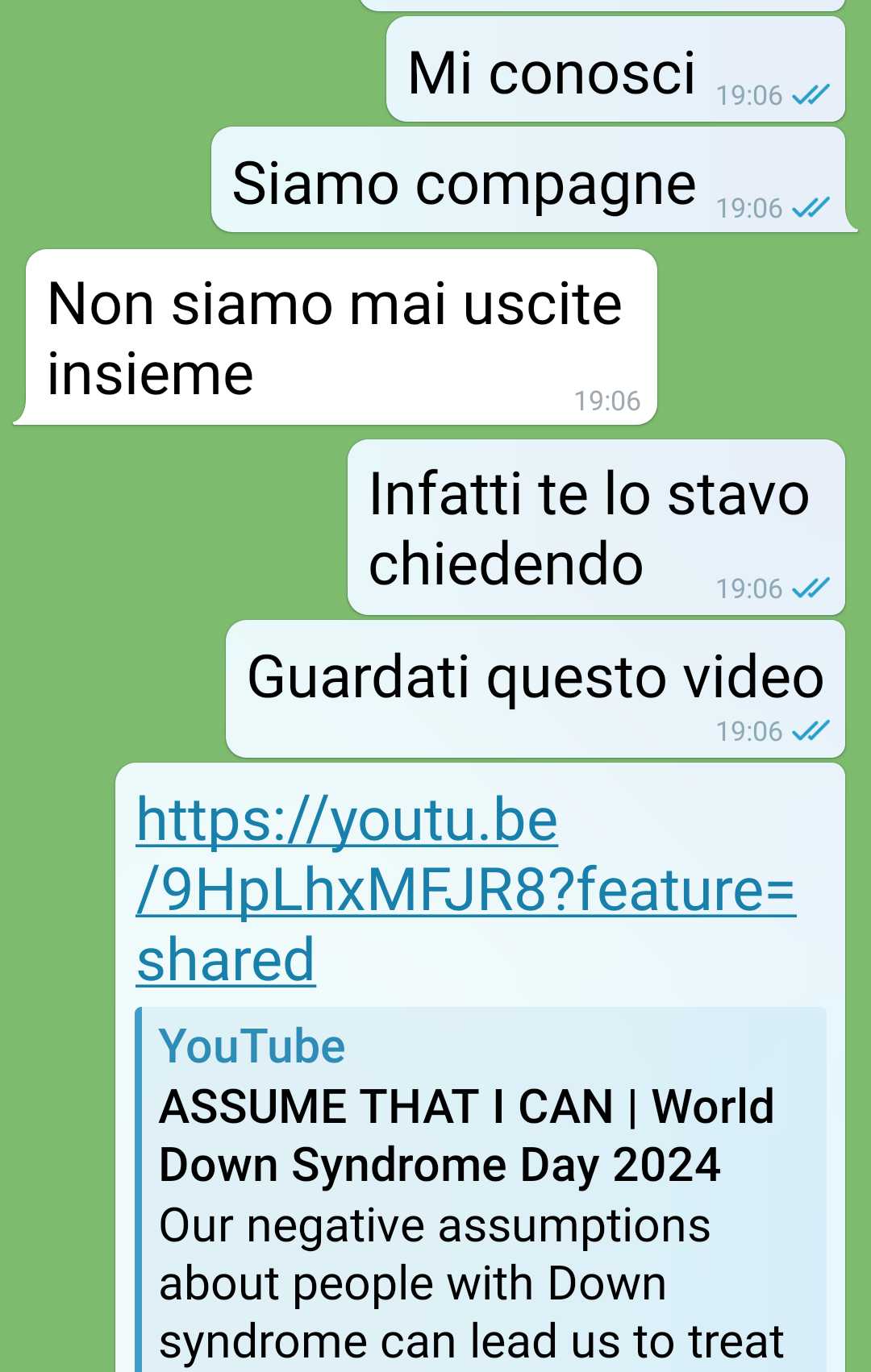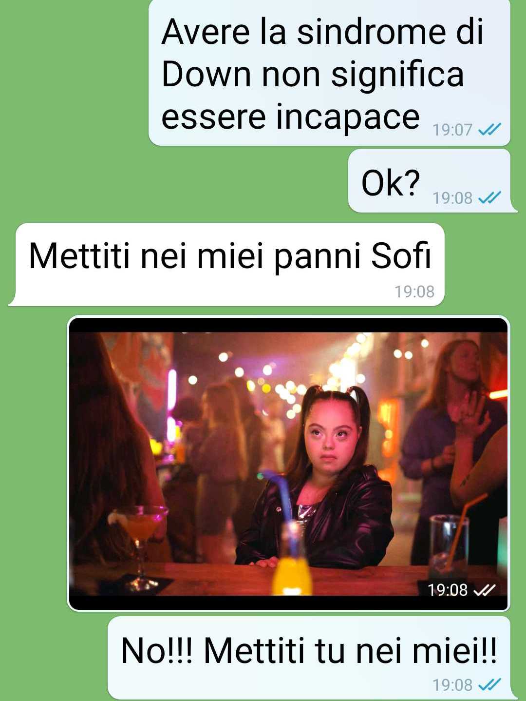 Nel suo racconto cita anche uno spot che in questi giorni circola sui social e che l’ha molto colpita. Vederlo le ha provocato un forte pianto, fatto sia di rabbia che di speranza. Rabbia per le ingiustizie che ancora vive, ma anche speranza di poter trovare persone che la comprendano davvero. Desidera incontrare un’amica vera, che voglia uscire con lei per divertirsi, senza pregiudizi.