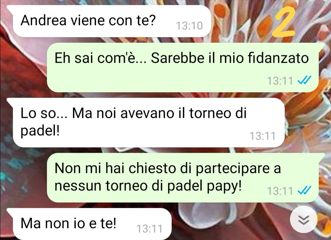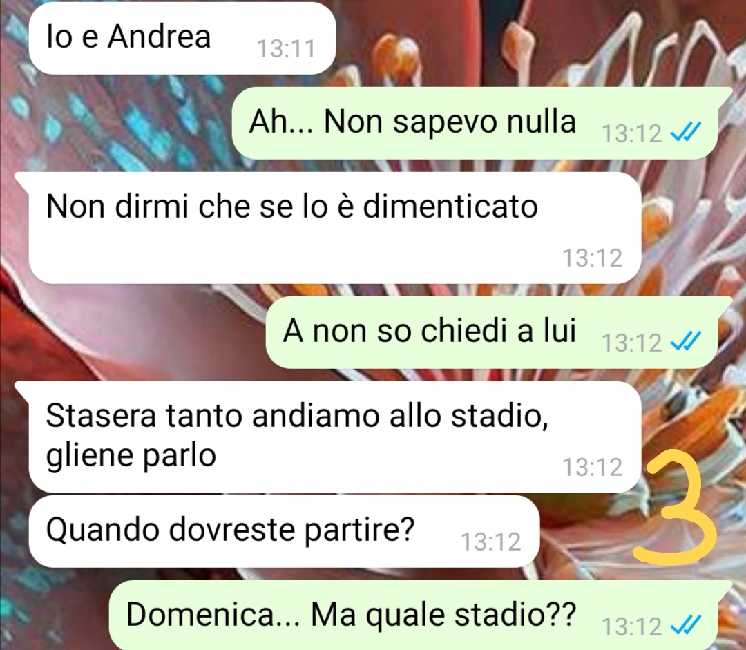 Mi chiamo Chiara e frequento il secondo anno di terapia occupazionale. Questa estate ho svolto un tirocinio presso una struttura ospedaliera e quindi ho passato tutta l’estate a lavorare. A inizio settembre finalmente il tirocinio si è concluso e io e Andrea, il mio fidanzato, abbiamo pensato di organizzare una piccola vacanza settembrina per stare un po’ insieme e goderci un po’ di mare. Io e Andrea stiamo insieme da quasi due anni ormai, io sono molto innamorata ma tra di noi c’è un problema. Eh già, una terza persona da qualche tempo si è insinuata nella nostra coppia e non perde occasione per mettersi in mezzo e portarmi via il mio Andrea continuamente. La conversazione che vi mando è avvenuta proprio con questa persona quando, dopo averle comunicato che io e Andre saremmo partiti per il mare ha reagito in un modo che non mi sarei aspettata. Allora ho deciso di prendere il coraggio a quattro mani e affrontare una volta per tutte l’argomento! Piccolo spoiler: non vi immaginereste mai chi è questa persona, ma lo capirete sin dai primi messaggi!