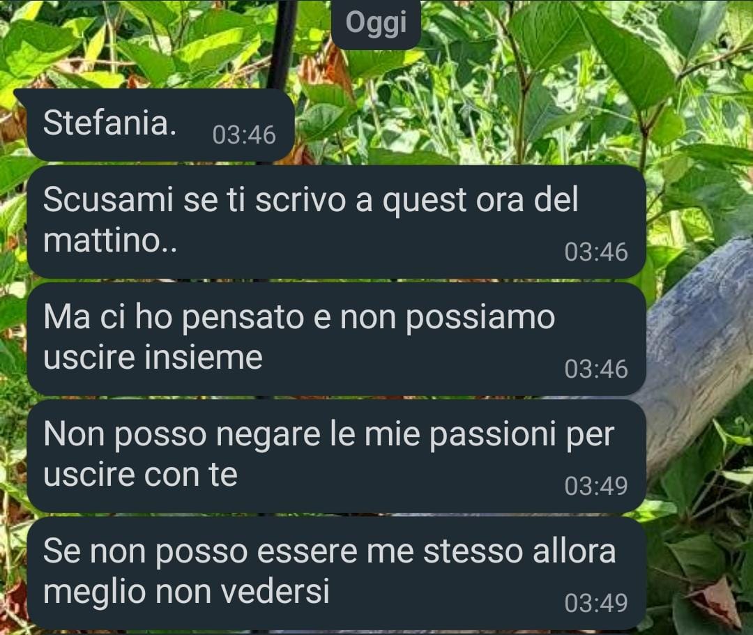 Attraverso questo racconto, Stefania riflette su un tema più ampio che riguarda l’importanza dell’autenticità e della compatibilità nelle relazioni, sottolineando come talvolta sia necessario riconoscere l’incompatibilità e procedere per la propria strada, anziché forzare connessioni destinate a rimanere superficiali o insoddisfacenti.