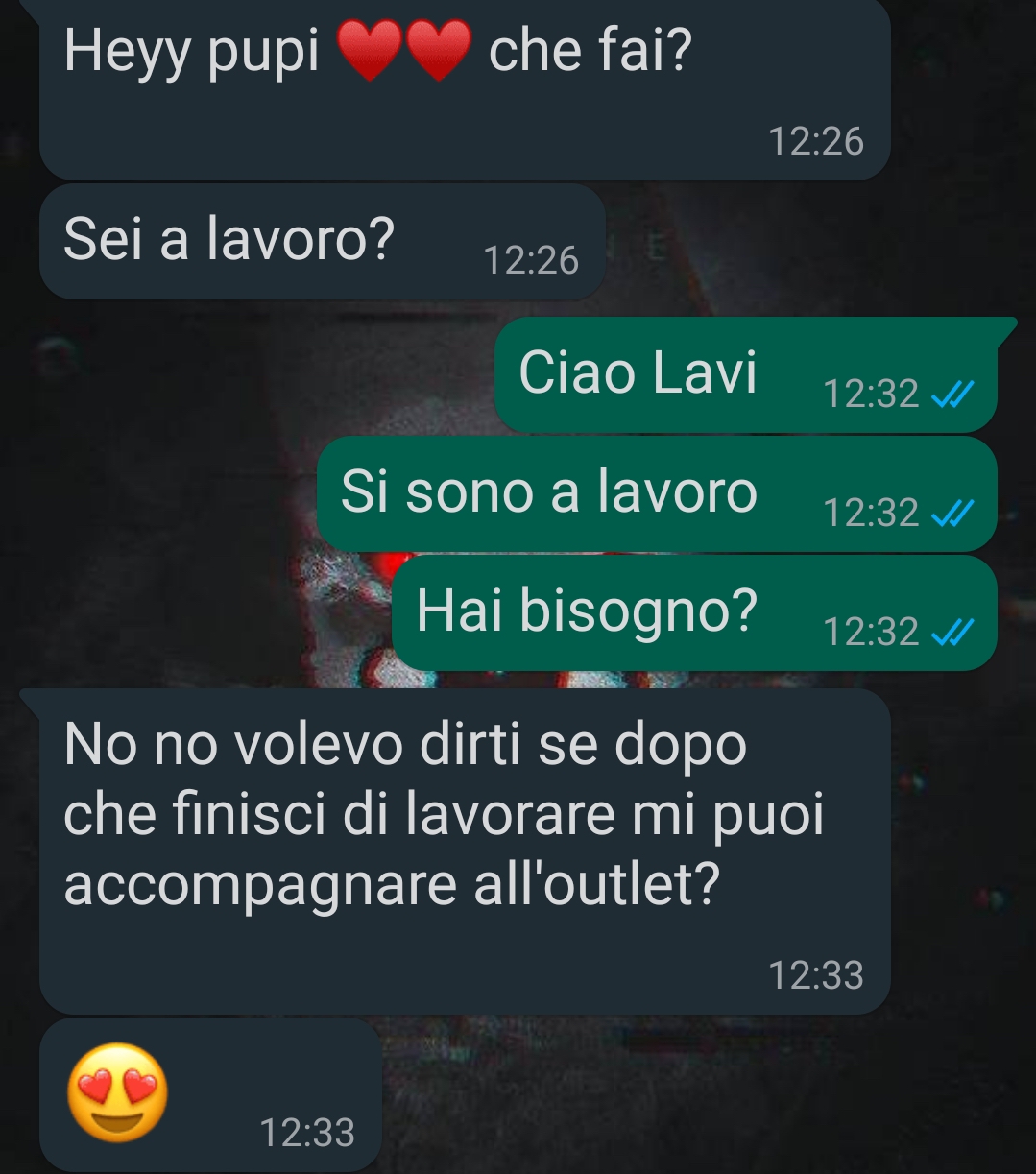 Poi conosco Lavinia, amica di una mia ex collega, che per il primo mese sembra tutta moine e coccole (infatti non sono mai stato molto convinto, ma volevo provarci almeno), poi si è rivelata per quello che era: una attaccata ai soldi, più che a me. Ma ragazzi, sono felice che sia successo perché ho capito che il karma esiste.