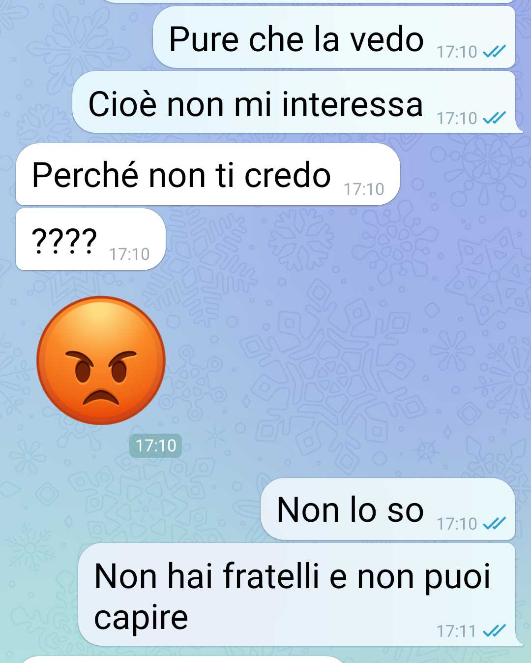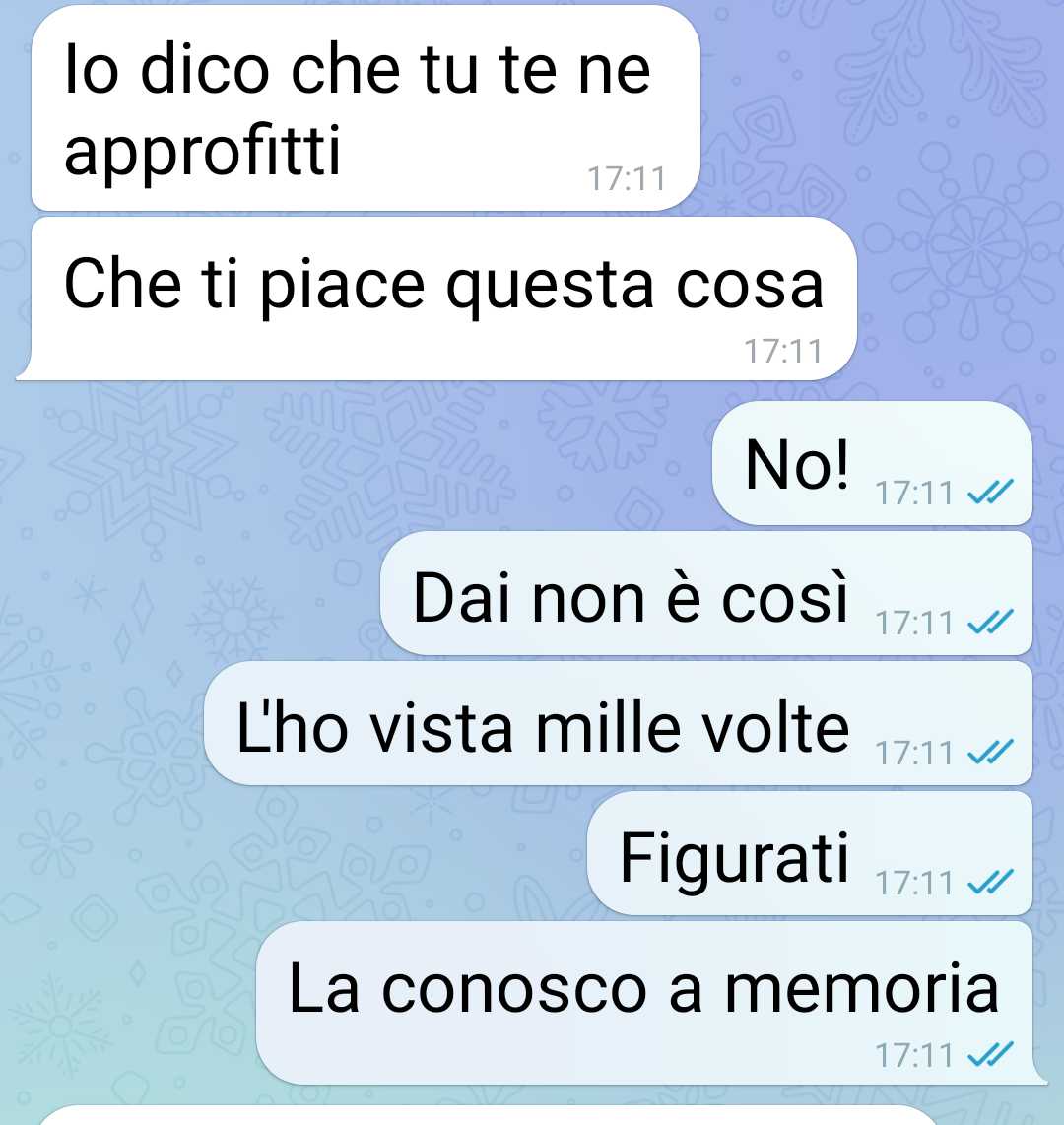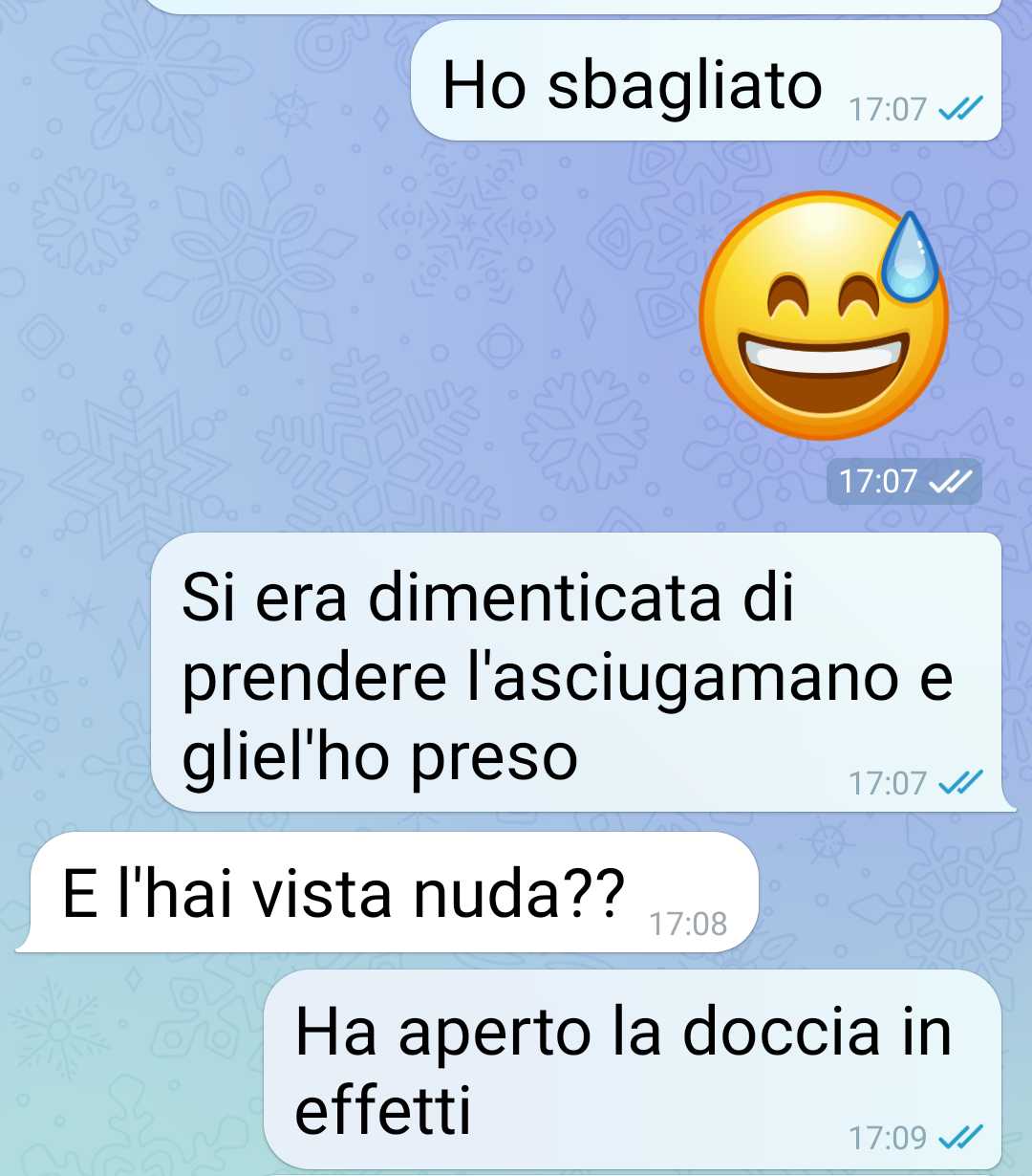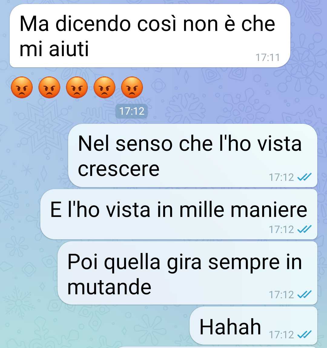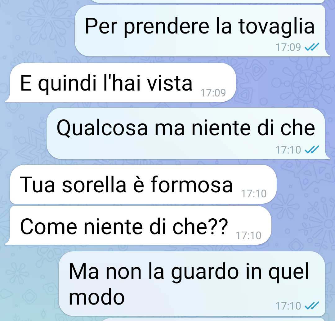 La compagna, che nella sua famiglia non ha fratelli ma solo una sorella maggiore con la quale non condivide la casa, ha mostrato difficoltà nel comprendere la casualità e l’innocuità percepita da lui in tali circostanze. La sua reazione ha evidenziato una mancanza di comprensione riguardo alle situazioni che possono verificarsi quando si condividono spazi ristretti in famiglia, soprattutto in una casa dove la privacy può a volte essere limitata a causa delle circostanze abitative.