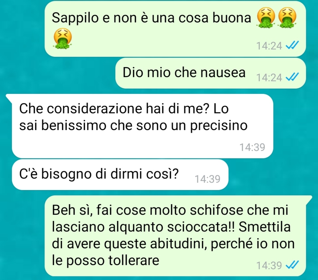 La nostra amica si chiede ora se sia possibile superare questa situazione o se, al contrario, si tratti di qualcosa che finirà per minare definitivamente il suo rapporto. Si sente confusa e combattuta, trovando difficile accettare un’abitudine che, per quanto personale, le provoca un senso di disgusto difficile da ignorare.