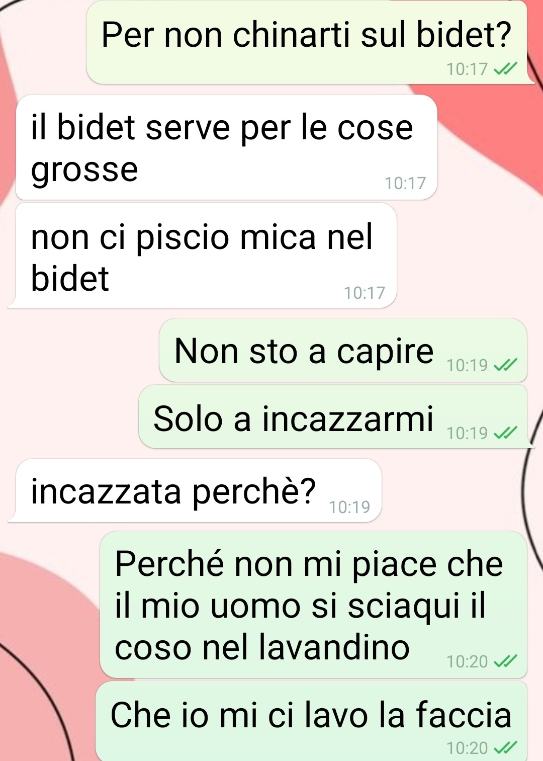 Per quattro mesi, spiega la nostra amica, avrebbe sopportato la situazione in silenzio, cercando di non trasformare la convivenza in un continuo rimprovero. A un certo punto, però, decide di affrontare l’argomento e di esprimere chiaramente il proprio disagio. Racconta che il compagno sembrava aver recepito la richiesta: da quel momento, niente più schizzi visibili, niente più disordine evidente. La nostra follower si era persino compiaciuta interiormente, riconoscendo in lui uno sforzo non scontato.