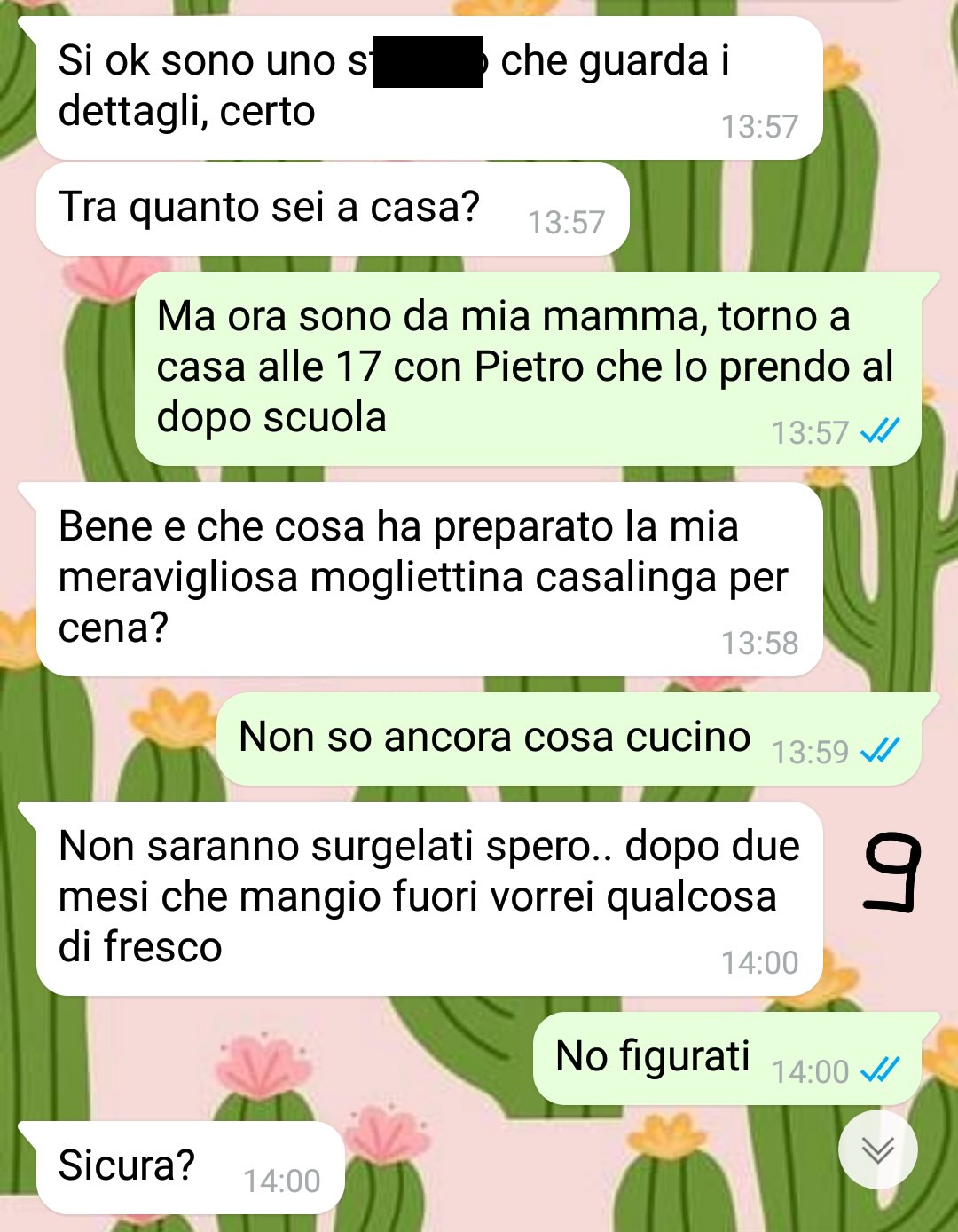 La nostra fan si mostra sorpresa e amareggiata da questo cambio di atteggiamento. Sottolinea quanto il suo lavoro domestico sia importante non solo per lei, ma anche per l’intera gestione della famiglia. Si chiede chi cucinerebbe, chi pulirebbe, chi si occuperebbe del figlio se lei fosse fuori tutto il giorno. Luisella si trova quindi a dover difendere una scelta che considera valida e fondamentale, in un contesto in cui sembra non essere più compresa come prima. Una situazione che la spinge a interrogarsi sul senso del proprio ruolo e sul rispetto reciproco all’interno della coppia.