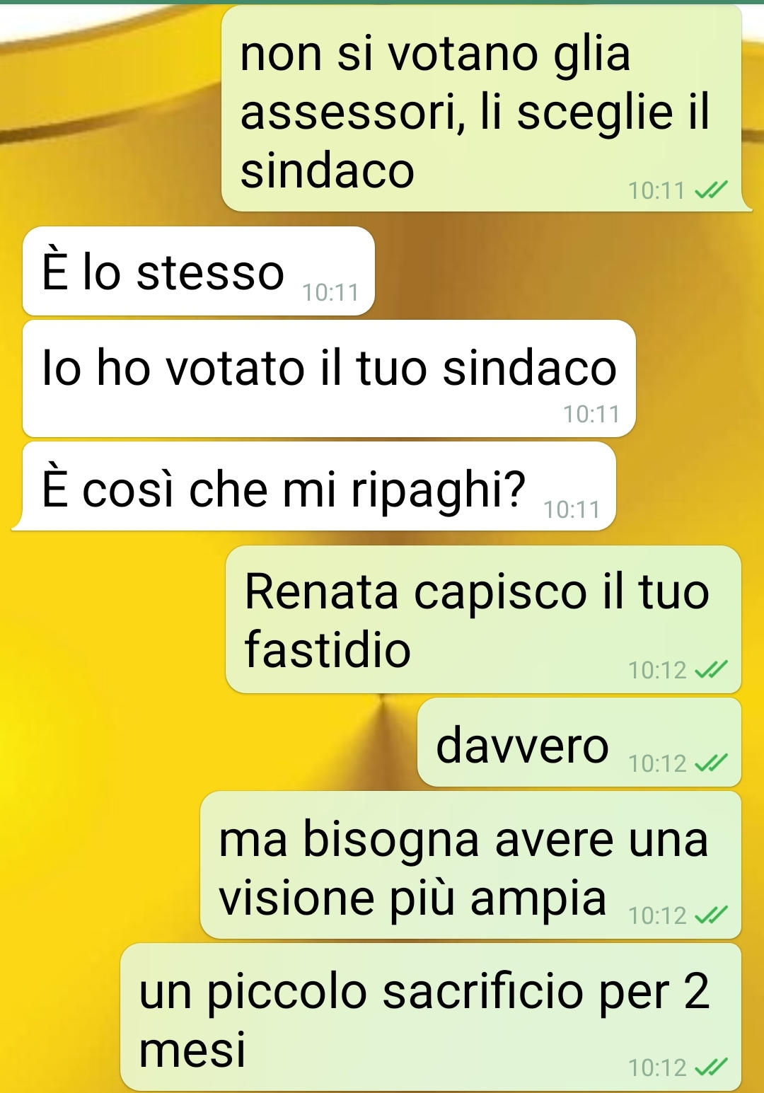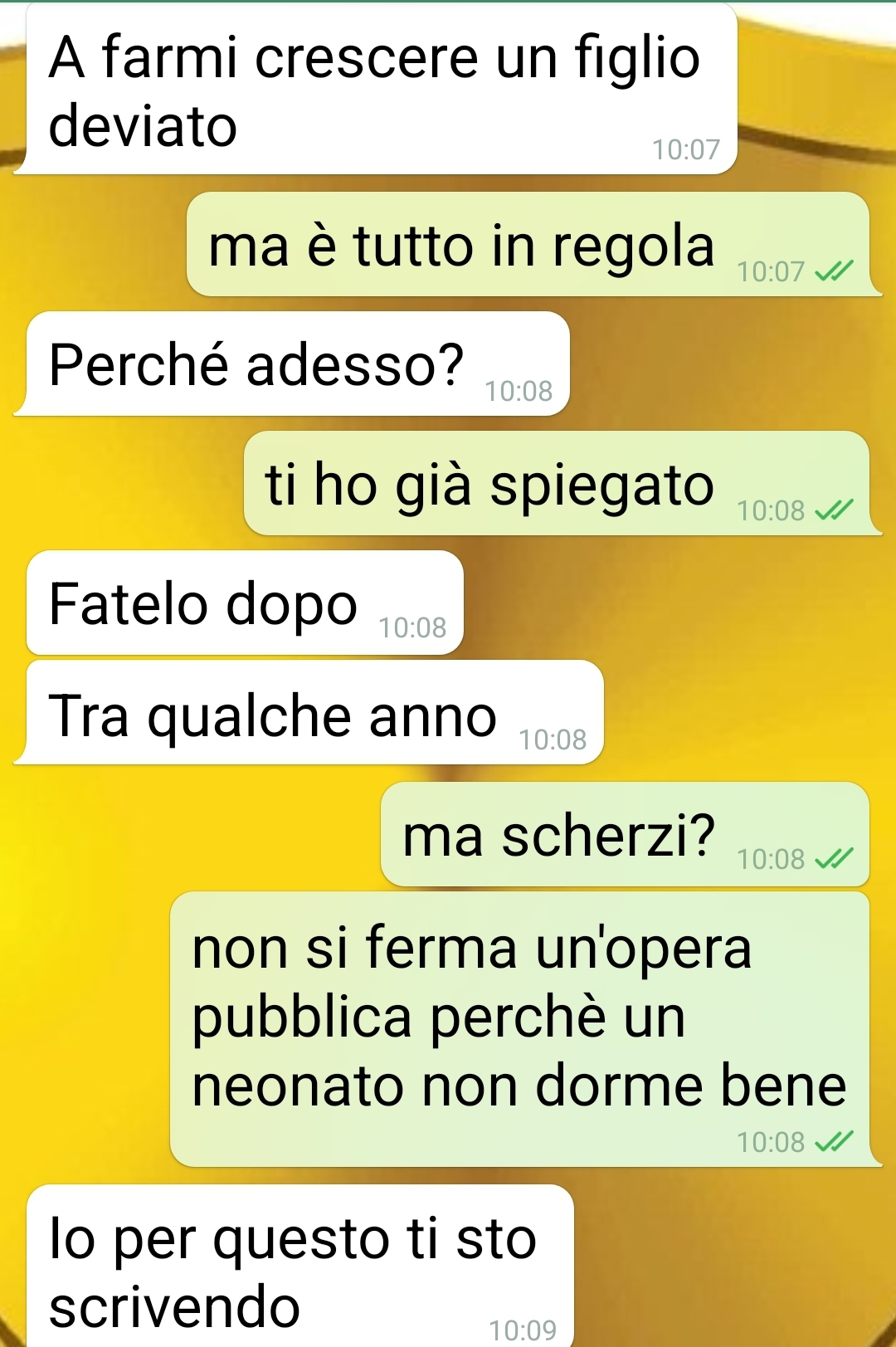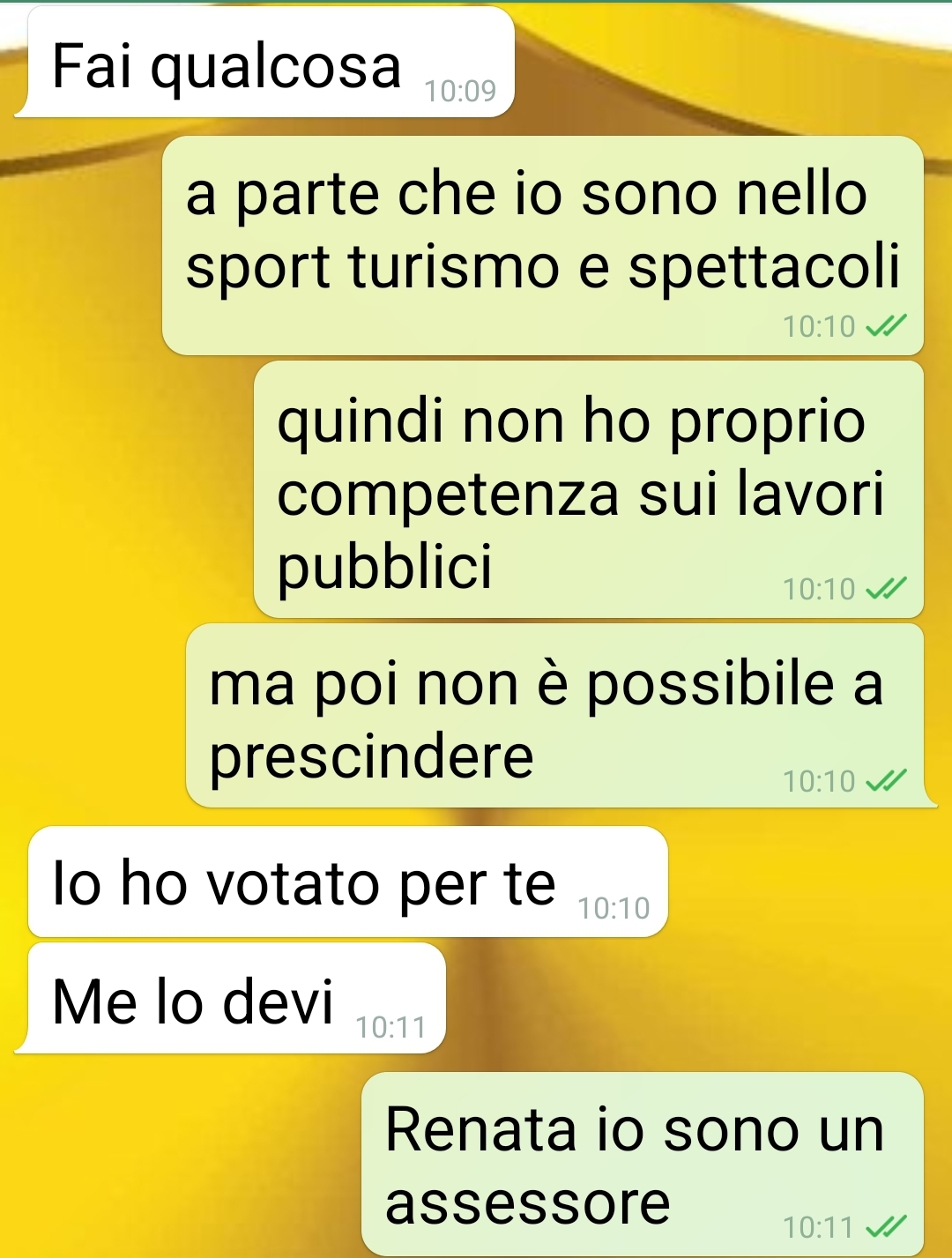 Il motivo del contatto ha lasciato completamente incredula la nostra follower: Renata ha chiesto esplicitamente che i lavori di riqualificazione nella zona del paese dove risiede vengano immediatamente interrotti. La motivazione addotta dalla donna è apparsa subito surreale all’assessore, poiché il problema lamentato riguarda il fatto che il rumore delle ruspe disturba il sonno del suo bambino. Nonostante i tentativi di Lucilla di spiegare la situazione e cercare di far ragionare la sua conoscente, ogni sforzo si è rivelato completamente inutile.