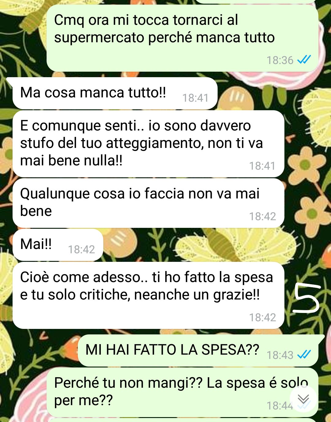 La nostra fan convive con il suo ragazzo da pochi mesi, ma ha già raggiunto il limite della sopportazione per via del suo atteggiamento casalingo. Fin da subito è emersa una netta differenza nel modo in cui i due intendono la convivenza: mentre lei si occupa di tutte le incombenze domestiche – cucina, pulizie, spesa – il suo compagno si limita a godere di questi servizi senza mai prendere l’iniziativa.