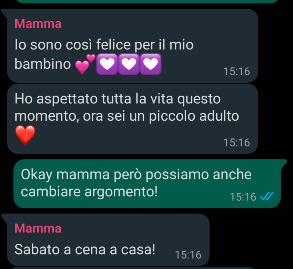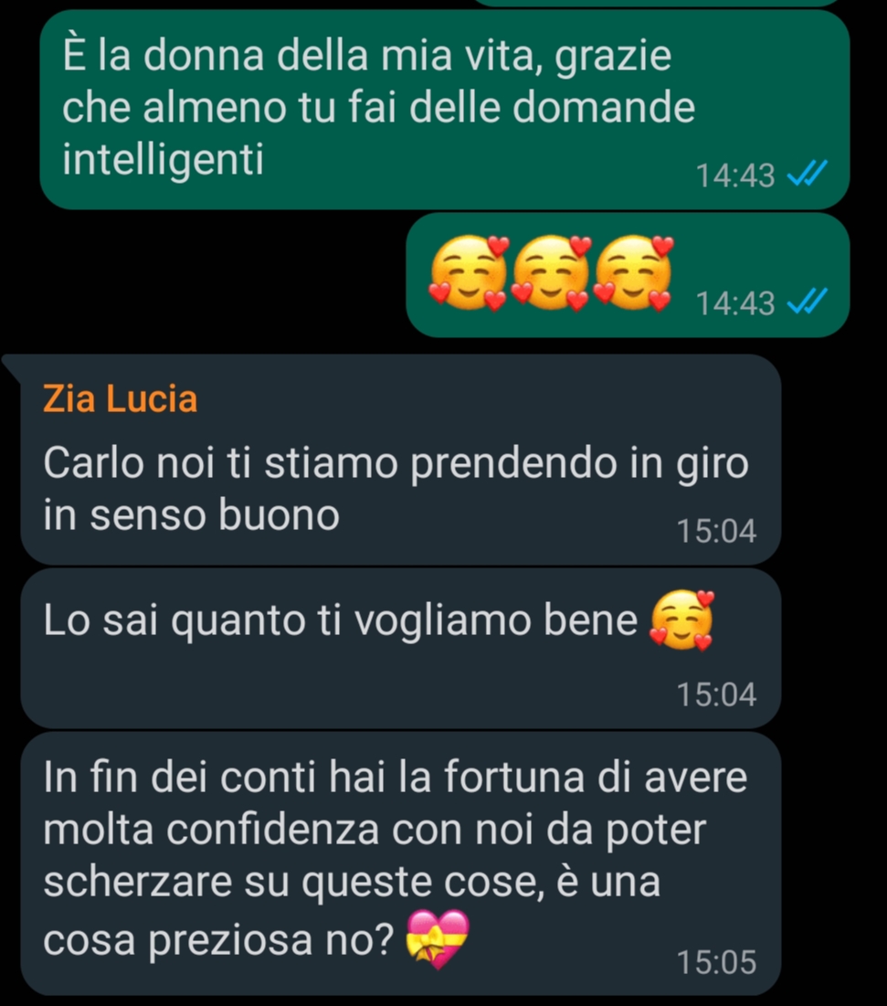 La condivisione di un’esperienza così intima nel gruppo familiare apre a una serie di dinamiche interessanti, soprattutto considerando la reazione inaspettata del padre di Carlo. La domanda sorprendente del padre, che sembra alludere a preoccupazioni sulle conseguenze di tale esperienza (“Io spero solo di non aver fatto centro….”), mette Carlo in una posizione di imbarazzo e riflessione sulle modalità con cui certi argomenti vengono trattati in famiglia.