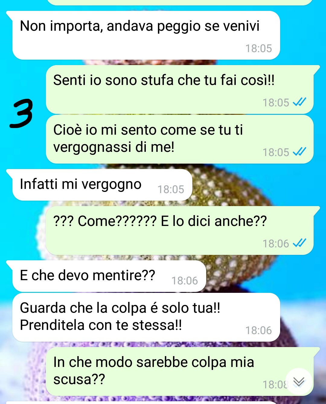 Io davvero il mio ragazzo non lo capisco!! Cioè sta sempre a dirmi che sono carina, che sta bene con me, ma poi non vuole mai portarmi alle cene o alle feste di famiglia, dice che io non vado bene, si vergogna di me!! Allora vi racconto. Io mi chiamo Ilda e il mio ragazzo si chiama Salvatore. Lui è tipo fissato con le ricorrenze familiari: nella sua famiglia fanno tipo la festa per il compleanno della mamma o il cognato o la cugina in cui vengono tutti i parenti e si mangia un casino ecc.. che poi è anche un po’ una palla eh ma lui ci tiene tanto e io così ci voglio andare perché se no sembra quasi che noi non stiamo insieme davvero, che questa non sia una storia seria!! All’inizio Salvatore era contento di portarmi a ste feste ma adesso non vuole più farlo: ma non è che lui non ci va, lui ci va ma io devo restare a casa! A me sta cosa non va bene perché non mi va che lui va alle feste come fosse senza una ragazza quando sta con me!! Cioè non vedo proprio il motivo che fa così!! Cioè io ho detto mai qualcosa che non va?? No! ho fatto qualcosa?? Ma neanche!! E alla fine così gli ho chiesto il perché e indovinate che ha detto???… leggete…