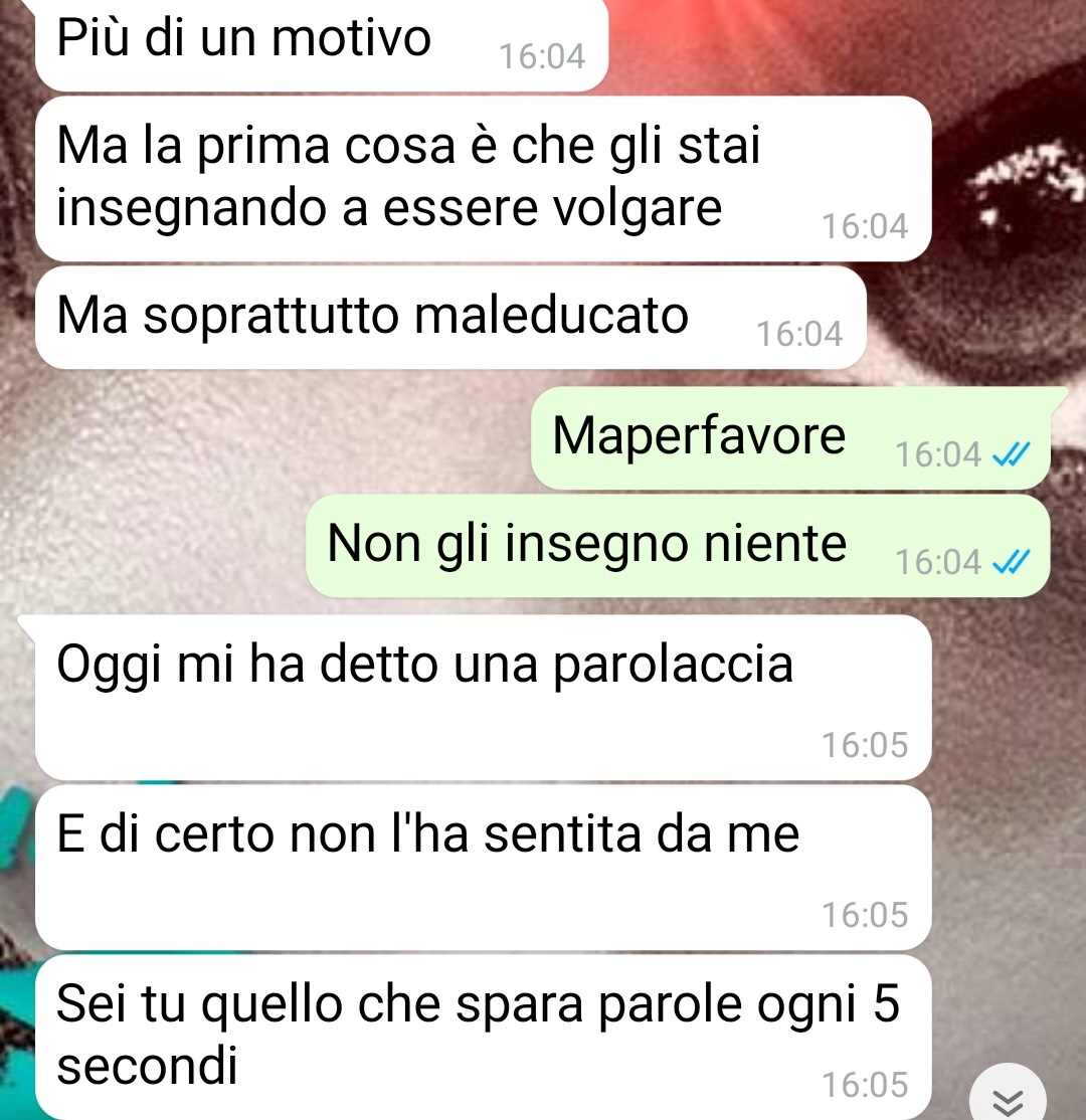 Nel testo, Angelo racconta che, ai tempi del fidanzamento e del matrimonio, sua moglie non mostrava atteggiamenti eccessivi o comportamenti problematici. Precisa di voler essere onesto e diretto nel riportare la situazione, specificando che, se avesse percepito in passato anche solo un segnale del cambiamento attuale, probabilmente non si sarebbe neppure avvicinato a lei.