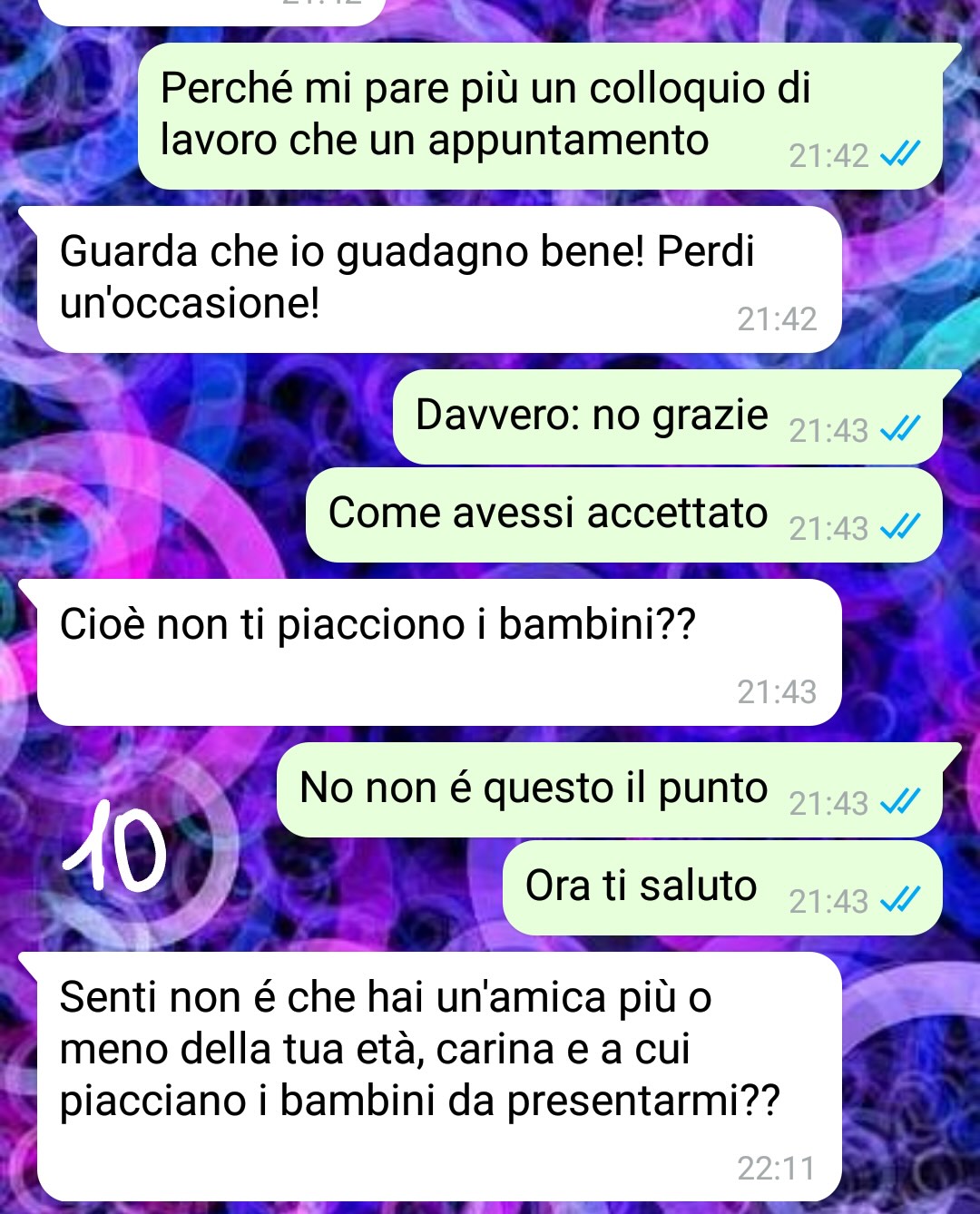 Il nostro fan invita a sorridere leggendo questo scambio surreale, ricordando a chi si trova in una fase simile che, per quanto difficile o scoraggiante possa sembrare, ogni esperienza ha un suo valore. Anche quelle più strane aiutano a capire cosa si desidera davvero e, soprattutto, a riconoscere la persona giusta quando finalmente arriva.