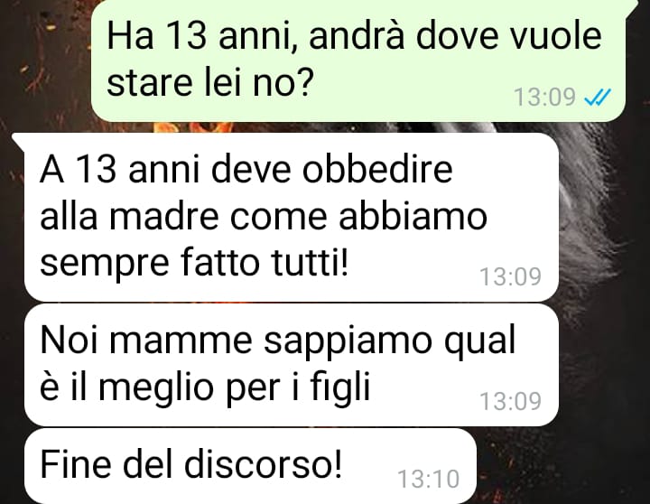 Il nostro fan ha voluto condividere questa conversazione per mostrare ciò che considera un atteggiamento ingiusto e poco razionale da parte della madre. Un confronto che si è fatto acceso e che, secondo lui, dimostra quanto oggi, in certe dinamiche familiari, possa diventare difficile mantenere un rapporto equilibrato, soprattutto quando manca un confronto sereno e oggettivo.