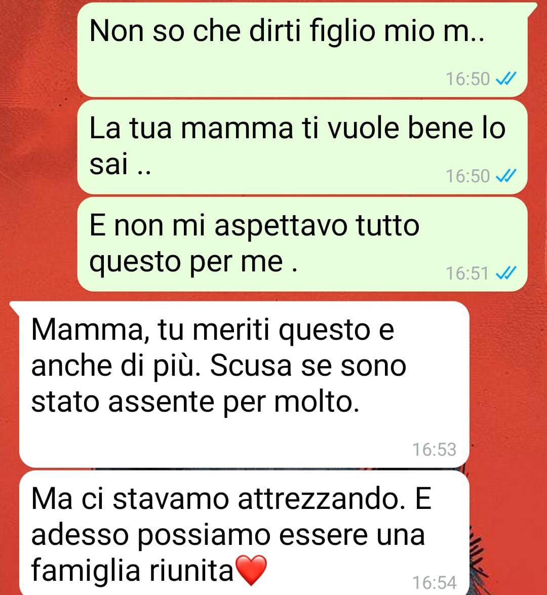 Uno degli aspetti che le dà più gioia è lo scambio quotidiano di messaggi con suo figlio. Il nostro follower è ormai un uomo adulto e anche padre, ma per lei resterà sempre “il suo bambino”. Anche se vivono lontani, si sentono spesso e mantengono un rapporto stretto e affettuoso. La nostra fan racconta che il figlio continua a preoccuparsi per lei e a chiederle come sta, dimostrando attenzione e premura.