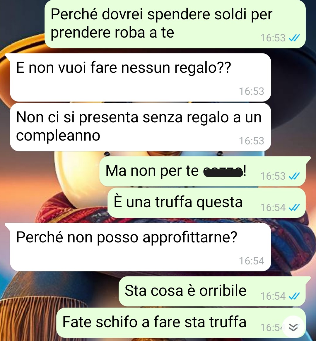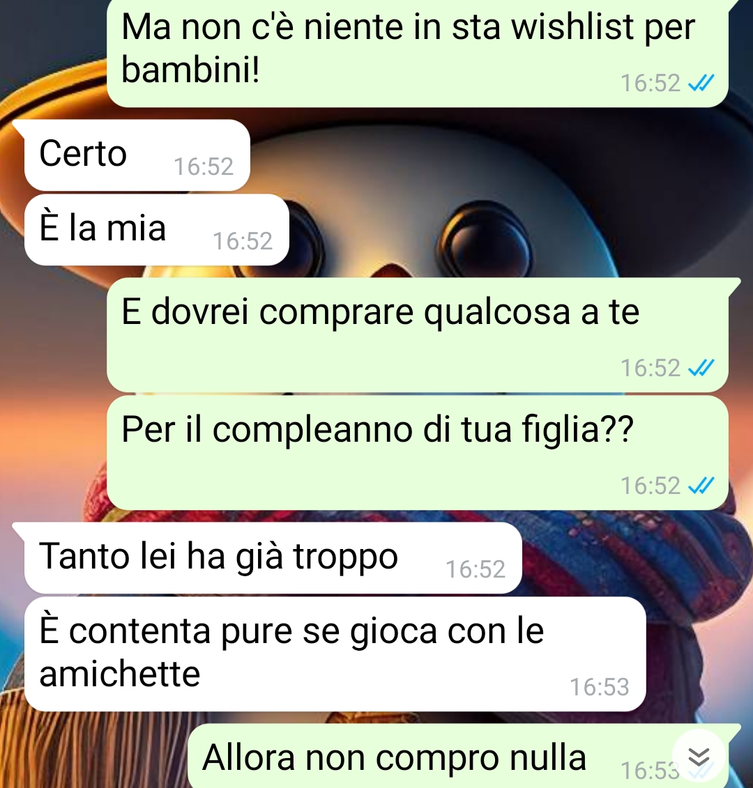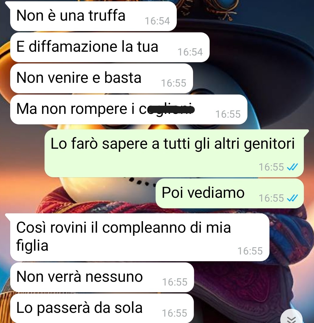 Aurora precisa che sua sorella ha già vissuto situazioni simili in due occasioni precedenti, anche se con caratteristiche leggermente meno estreme. La nostra follower esprime la speranza che questa particolare tendenza non si diffonda ulteriormente, mostrando preoccupazione per quelle che definisce strane nuove abitudini nel mondo delle feste infantili. L’episodio ha evidentemente lasciato un’impressione significativa sulla madre, che ha deciso di condividere la sua esperienza per confrontarsi con altri genitori su questi cambiamenti nelle dinamiche sociali dei più piccoli.
