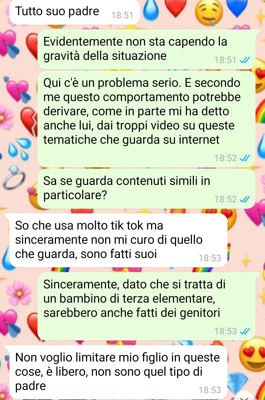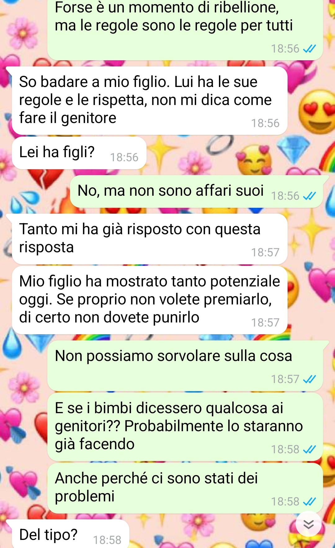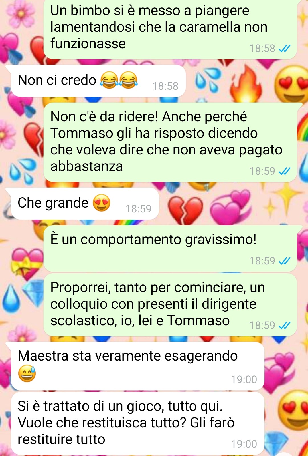La nostra follower, che lavora come maestra elementare, racconta di aver vissuto un’esperienza particolarmente scioccante con il padre di un suo alunno di nome Tommaso. L’amica spiega come spesso si senta dire che le insegnanti guadagnano troppo considerando le poche ore settimanali di lavoro e le vacanze estive, ma sottolinea che per tutti i casi difficili che deve affrontare quotidianamente – riferendosi non ai bambini ma ai genitori, parenti e colleghi – il compenso risulta persino inadeguato.