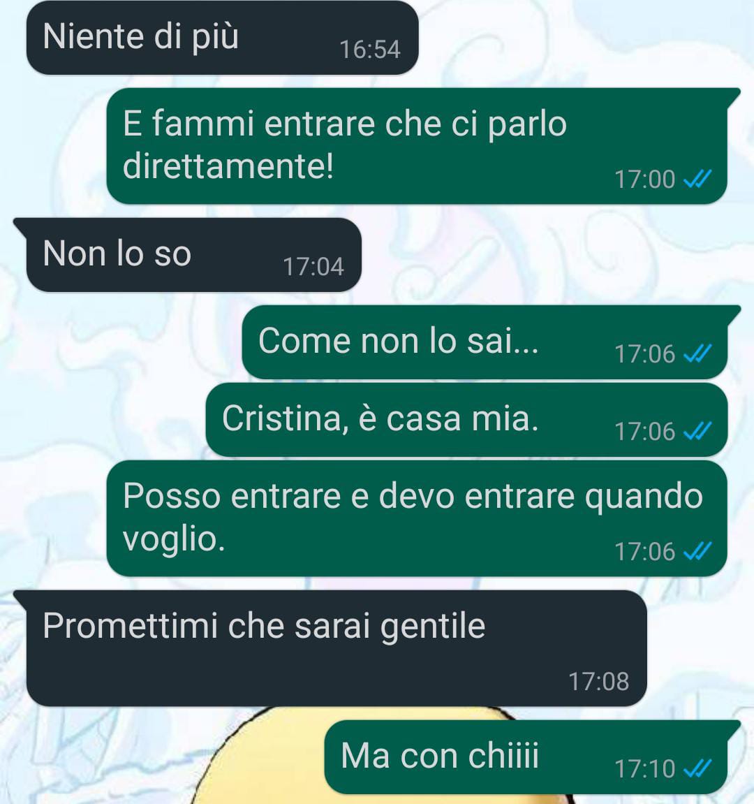 Il nostro fan racconta di aver ricevuto diversi avvertimenti prima di iniziare la relazione con Cristina. L’amico spiega che alcune persone gli avevano suggerito di pensarci bene prima di mettersi con quella che definisce una ragazza molto “fricchettona”. Tuttavia il follower racconta di non aver dato troppo peso a quei consigli e di aver deciso comunque di iniziare la relazione. Con il tempo, però, ha iniziato a rendersi conto che alcune caratteristiche del carattere di Cristina erano effettivamente molto particolari.