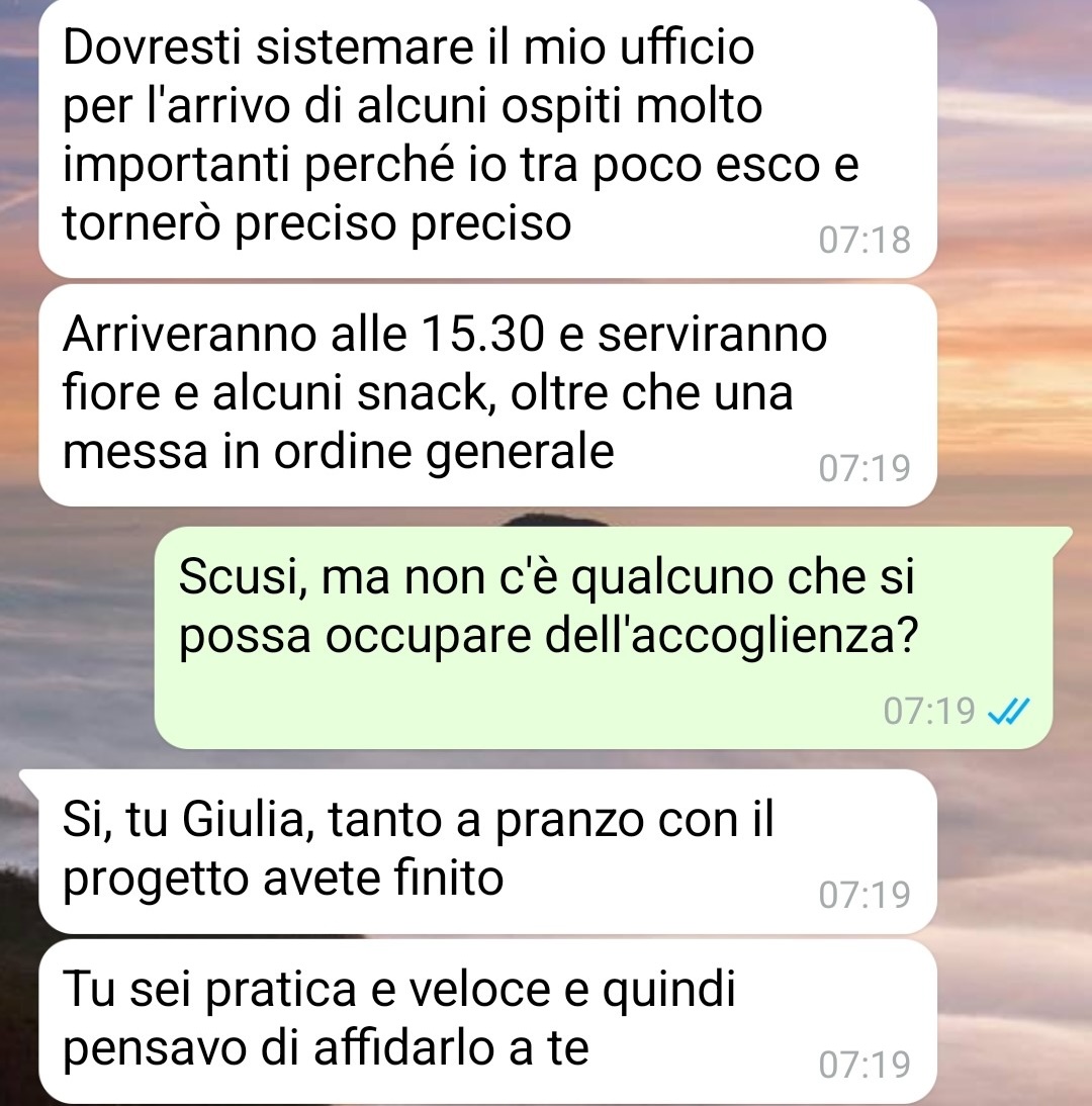 Il nostro fan racconta una situazione che, a suo dire, non riguarda soltanto il rapporto personale con il proprio superiore, ma riflette una condizione condivisa da molti lavoratori in Italia. L’amico descrive infatti una mentalità diffusa secondo cui i giovani dovrebbero accettare qualsiasi tipo di mansione, spesso accompagnata dalla promessa di poter crescere professionalmente o dimostrare il proprio valore nel tempo.