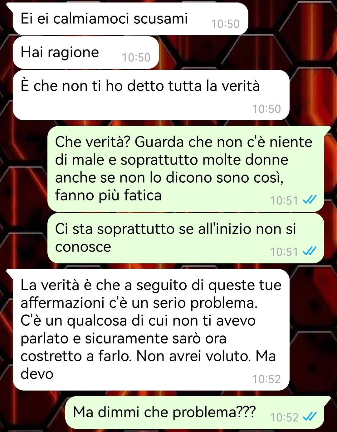 È stato lui, ferito nell’orgoglio per questo silenzio, a scriverle per primo. Ma ciò che ha davvero cambiato le carte in tavola è stato un fatto emerso poco dopo: una verità inaspettata sul conto di lui che l’ha lasciata completamente spiazzata. La nostra fan ha deciso di condividere questa storia per raccontare quanto, anche in situazioni inizialmente leggere o promettenti, possano emergere sorprese che ribaltano completamente la percezione di una persona.
