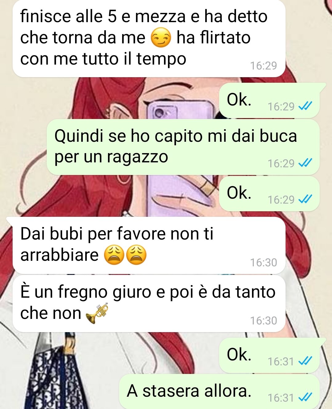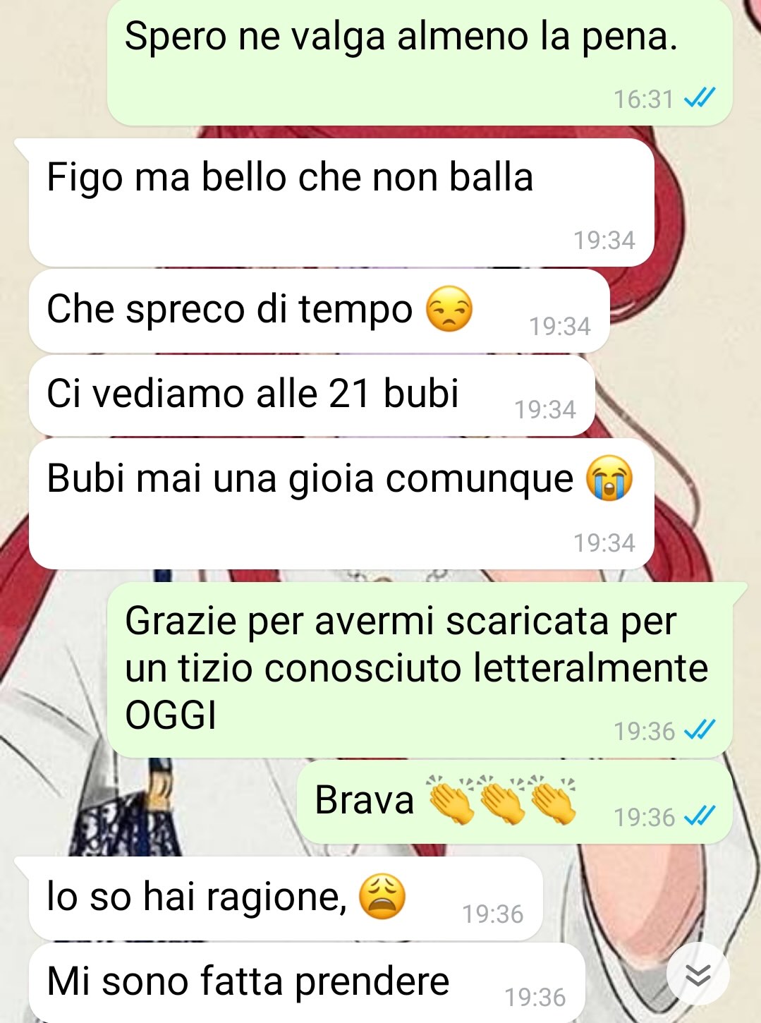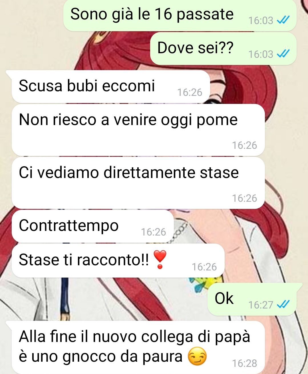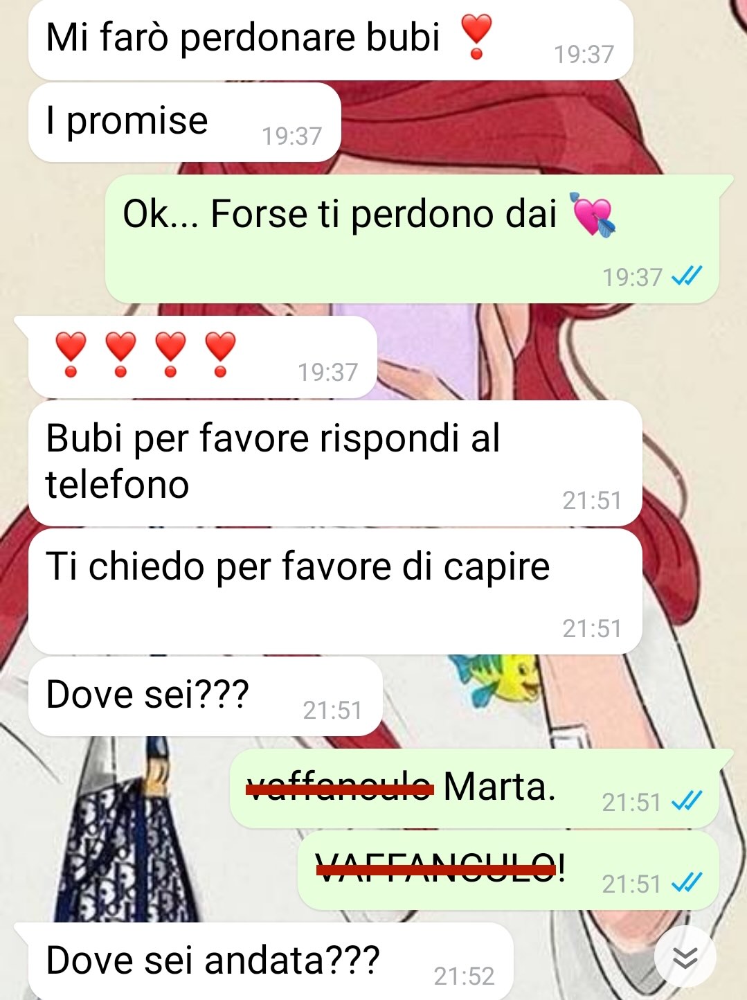 La chat che ha deciso di inviare riguarda una serata in cui lei e Marta avevano programmato di uscire insieme ad altri amici, compresa un’altra persona di cui la nostra fan non fa il nome, ma che sembrava rendere l’attesa ancora più speciale. La nostra amica non vedeva l’ora di quella serata, pregustandola da tempo.