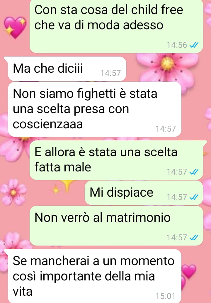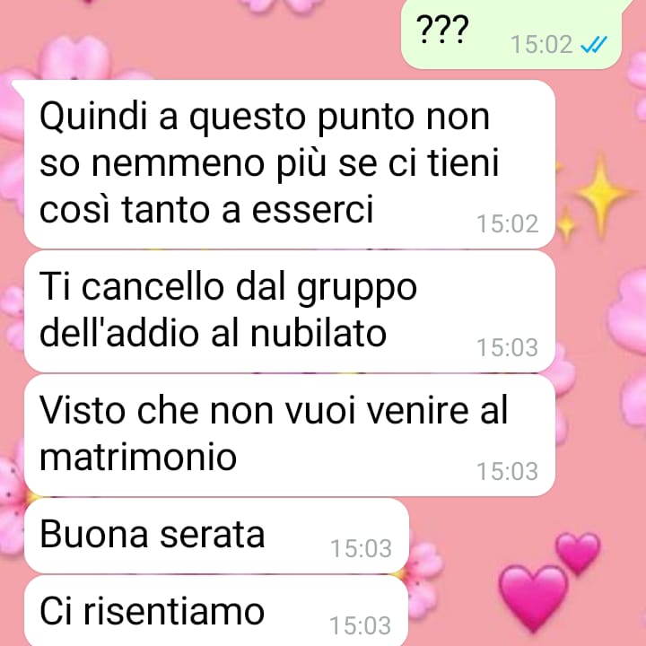 Ha scelto di inviare questa chat per mostrare quanto, secondo lei, sarebbe stato semplice adottare soluzioni più inclusive e per sottolineare come, in certi casi, dietro un’apparente amicizia possano nascondersi atteggiamenti che fanno emergere la vera natura delle persone.