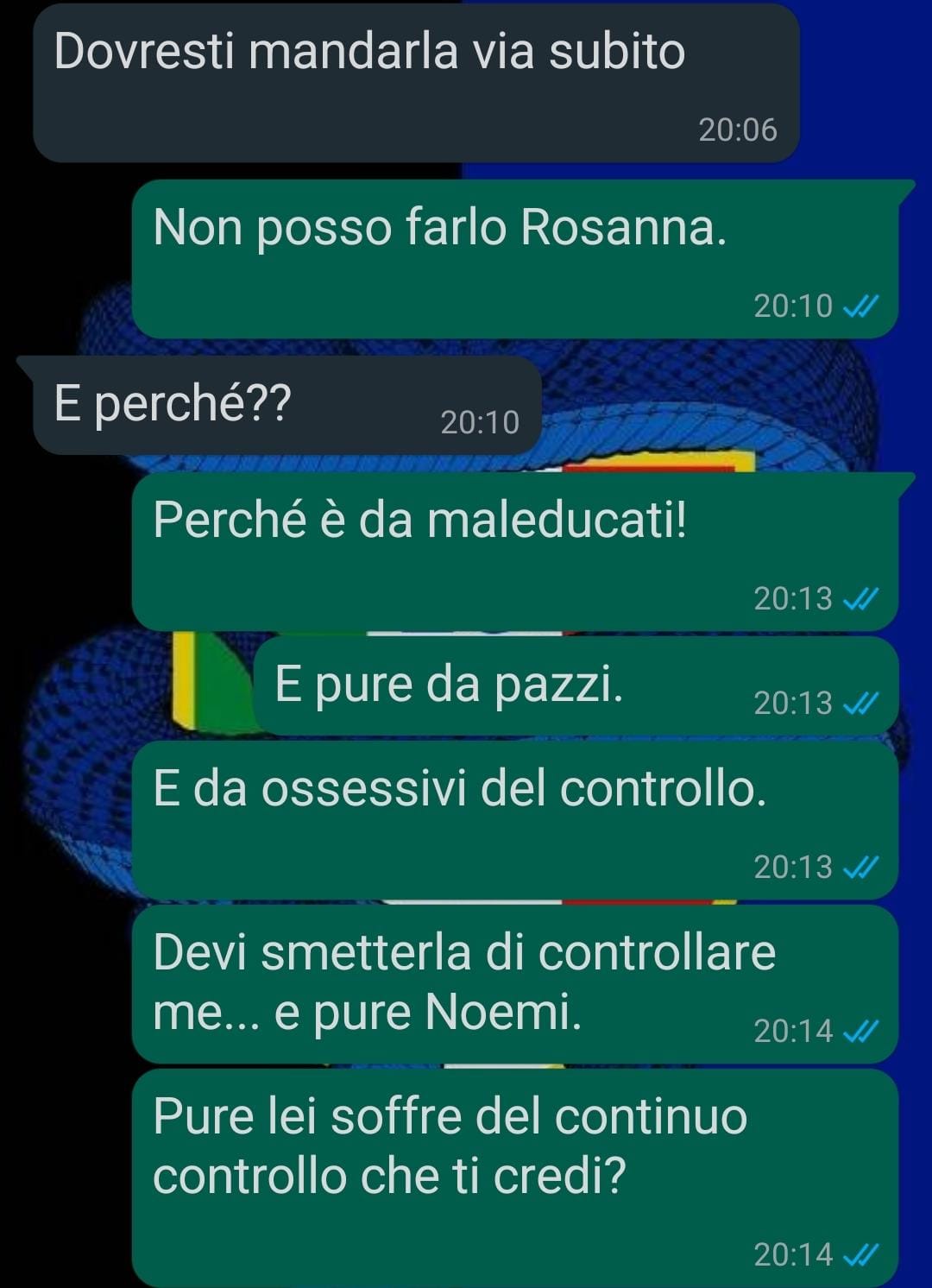 Il cambiamento, secondo il racconto del nostro follower, ha coinciso con alcuni eventi familiari importanti: la separazione della sorella di Rosanna e il trasferimento dei suoi genitori in un’altra città. Queste dinamiche, vissute come una perdita improvvisa di riferimenti e sostegno, hanno avuto un forte impatto emotivo su Rosanna, che ha cominciato a manifestare un atteggiamento di controllo sempre più marcato, accompagnato da crisi depressive e attacchi di panico.