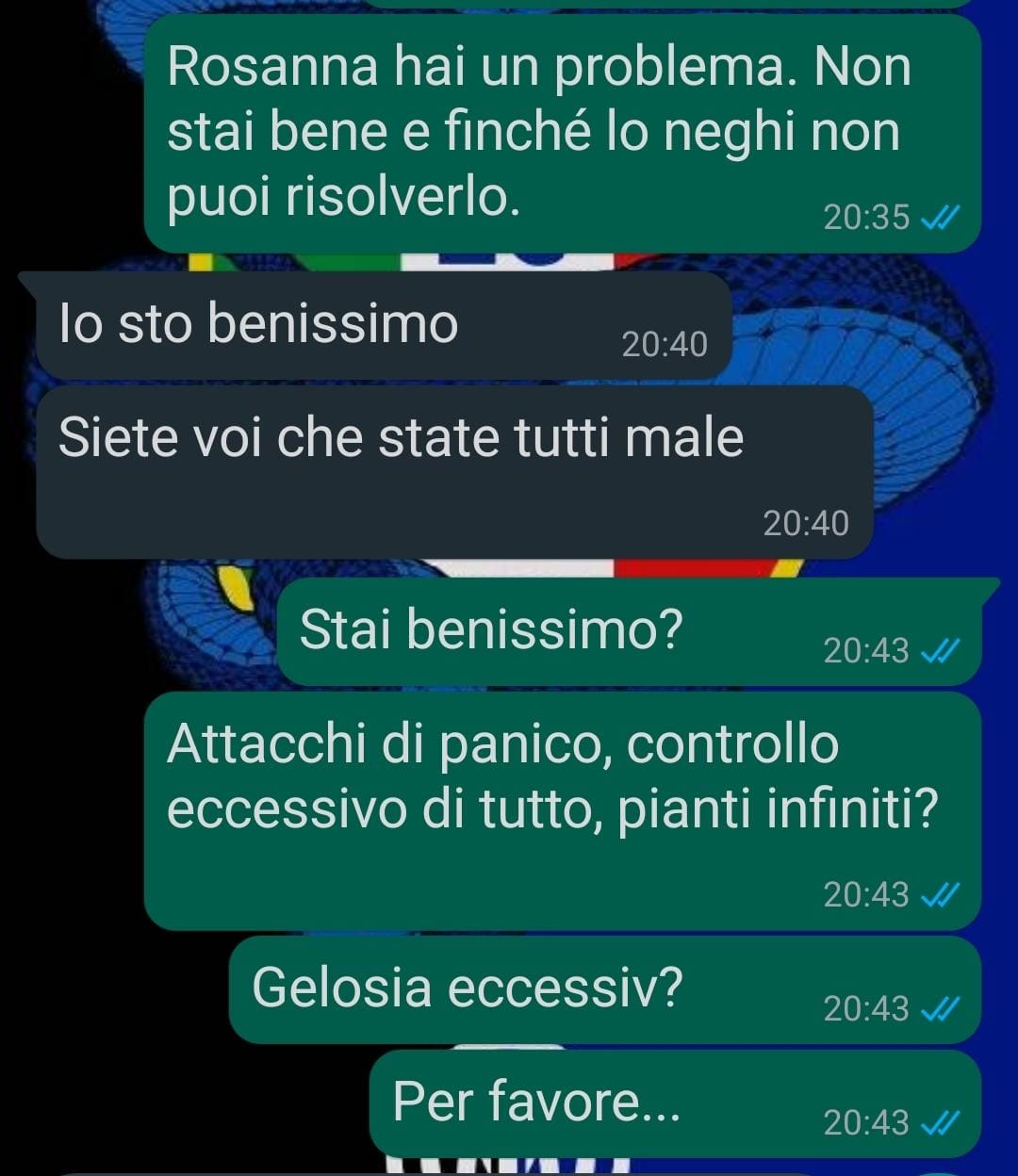 Resta, però, un forte desiderio che le cose possano migliorare: spera che Rosanna possa riconoscere la necessità di seguire una terapia adeguata, che possa aiutarla a ritrovare un equilibrio. Ma conclude sottolineando quanto sia difficile andare avanti in queste condizioni, soprattutto sentendosi l’unico a lottare per tenere insieme la famiglia.