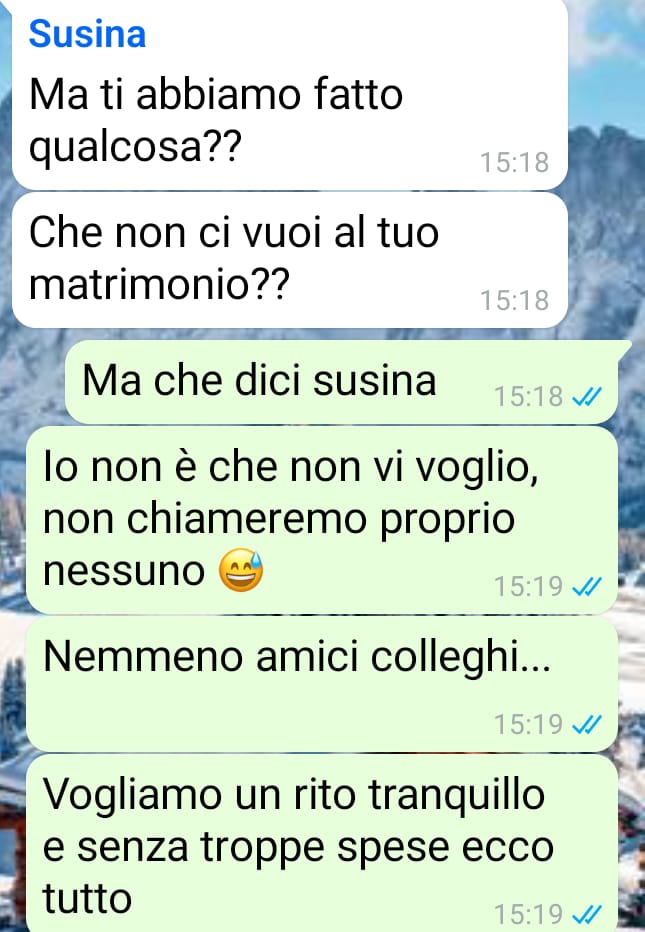 Fin qui, il nostro fan aveva provato a non dargli troppo peso. Quello che invece non aveva previsto è arrivato poco dopo: un messaggio nel gruppo di famiglia, in cui genitori e sorella hanno contestato apertamente la scelta di Michele e Valentina riguardo alla cerimonia. Un conto, secondo lui, è esprimere un dissenso con rispetto; un altro è rivolgere frasi che definisce dure e inaccettabili a un figlio, mettendo in discussione una decisione così personale.