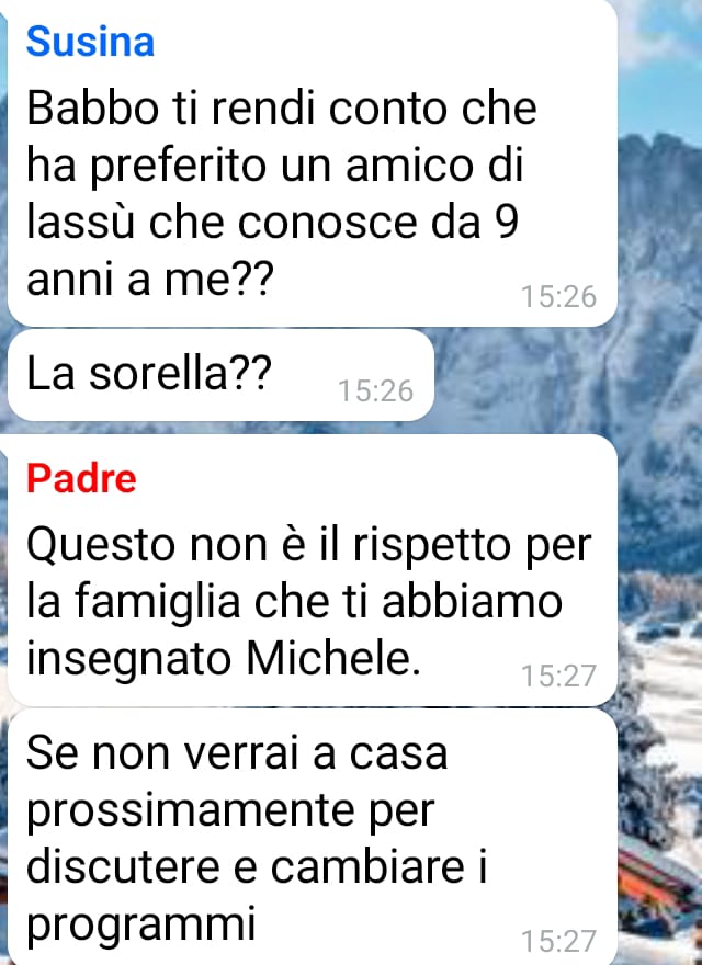 Michele si chiede perché sia ancora così difficile accettare che non tutti vogliono vivere certi momenti nello stesso modo, che per qualcuno sposarsi non significhi per forza fare grandi feste, riti classici o tradizioni imposte. Accenna anche alla possibilità di portare esempi di persone che hanno fatto scelte simili, per tranquillizzare la famiglia, ma ammette di non essere certo di riuscire a superare del tutto ciò che suo padre gli ha detto in quella conversazione.