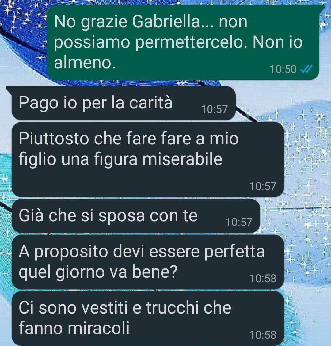 La nostra fan ha deciso di sposarsi insieme al suo compagno Giorgio, nonostante non sia, secondo lei, il momento più favorevole sotto alcuni aspetti. Se da un lato lui può contare su una buona stabilità lavorativa, dall’altro lei ha dovuto affrontare un percorso più incerto: la piccola azienda per cui lavorava è fallita due anni fa, lasciandola in una condizione di precarietà fatta di contratti a tempo determinato.