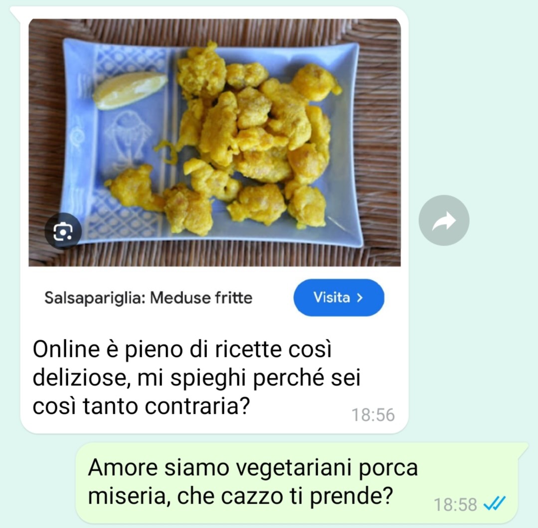 La nostra fan, Marilena, racconta di essere fidanzata con Giacomo e di condividere con lui, da molti anni, la scelta di essere vegetariani. Entrambi lo erano già prima di iniziare la loro relazione e, come precisa, non hanno mai cercato di imporre la loro filosofia di vita agli altri.