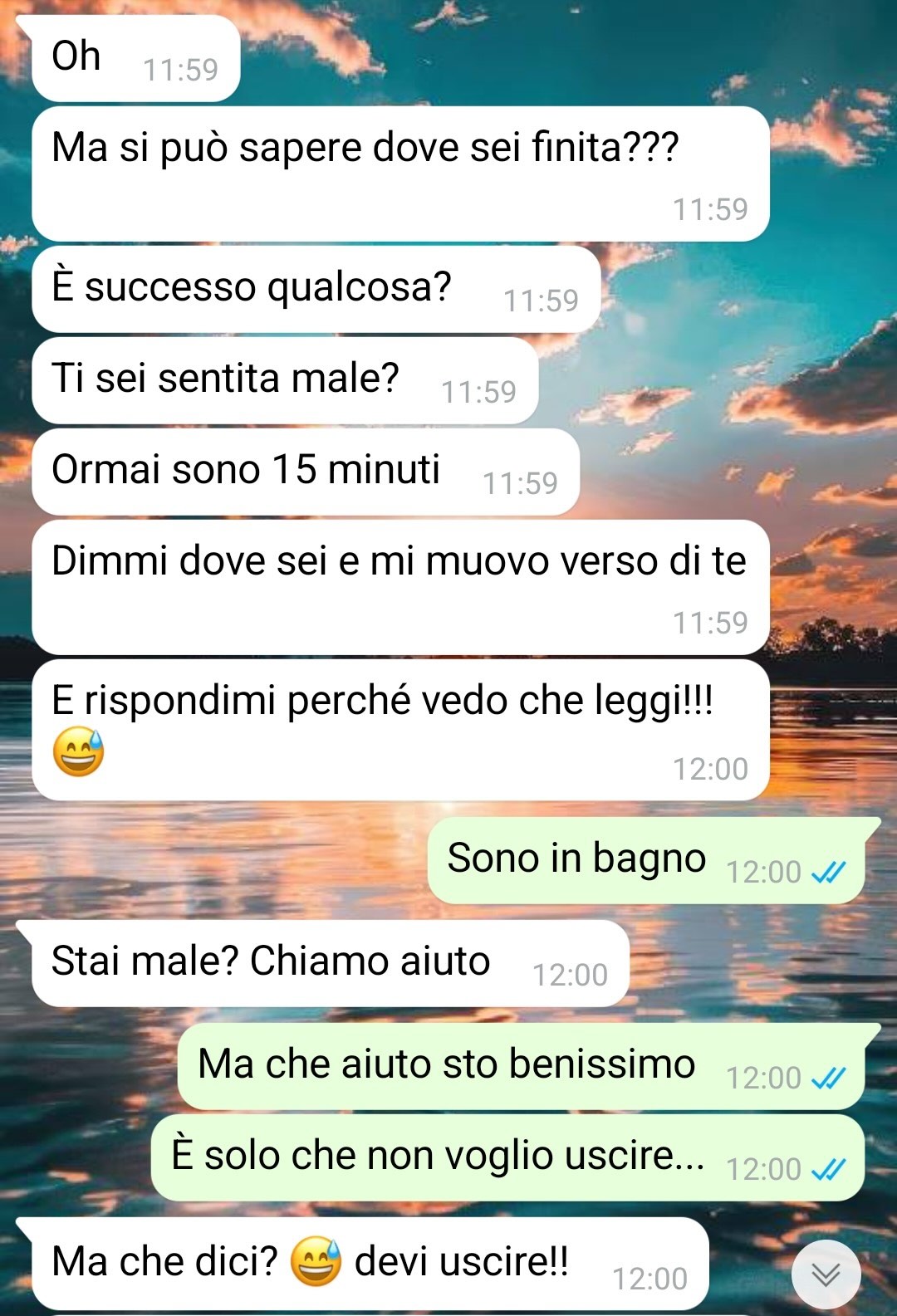 Questa mia conversazione, almeno questo è il mio obbiettivo, deve servire da faro di speranza e da guida per tutte quelle ragazze e quelle donne (ma in realtà volendo anche uomini) che soffrono o hanno sofferto di ansia e sociale e che, per un motivo o per un altro, si sono ritrovate a stare male nel farsi vedere in pubblico, magari auto costrette a stare chiuse in casa, o in macchina, o in un camerino o chissà dove senza farsi vedere. La vita è una e ognuna di voi è speciale a suo modo. Qualcuno è più bello, qualcuno è più simpatico, qualcuno è più intelligente, ma siete comunque speciali ed è giusto che tutti vi vedano e lo sappiano. Fino a pochissimo tempo fa, anch’io faticavo ad accettare tutto ciò fino a che l’esperienza che leggerete, breve ma intensa, mi ha fatto aprire gli occhi. Avevo paura di essere me stessa e per timore di rimanere da sola, mi ero fidanzato con questo Federico, un ragazzo che pur avendo i suoi lati positivi, sapevo che non teneva veramente a me. Purtroppo me ne sono accorta con certezza nella maniera peggiore e avevo solo una possibilità per uscirne: riscattarmi e apprezzare me stessa.