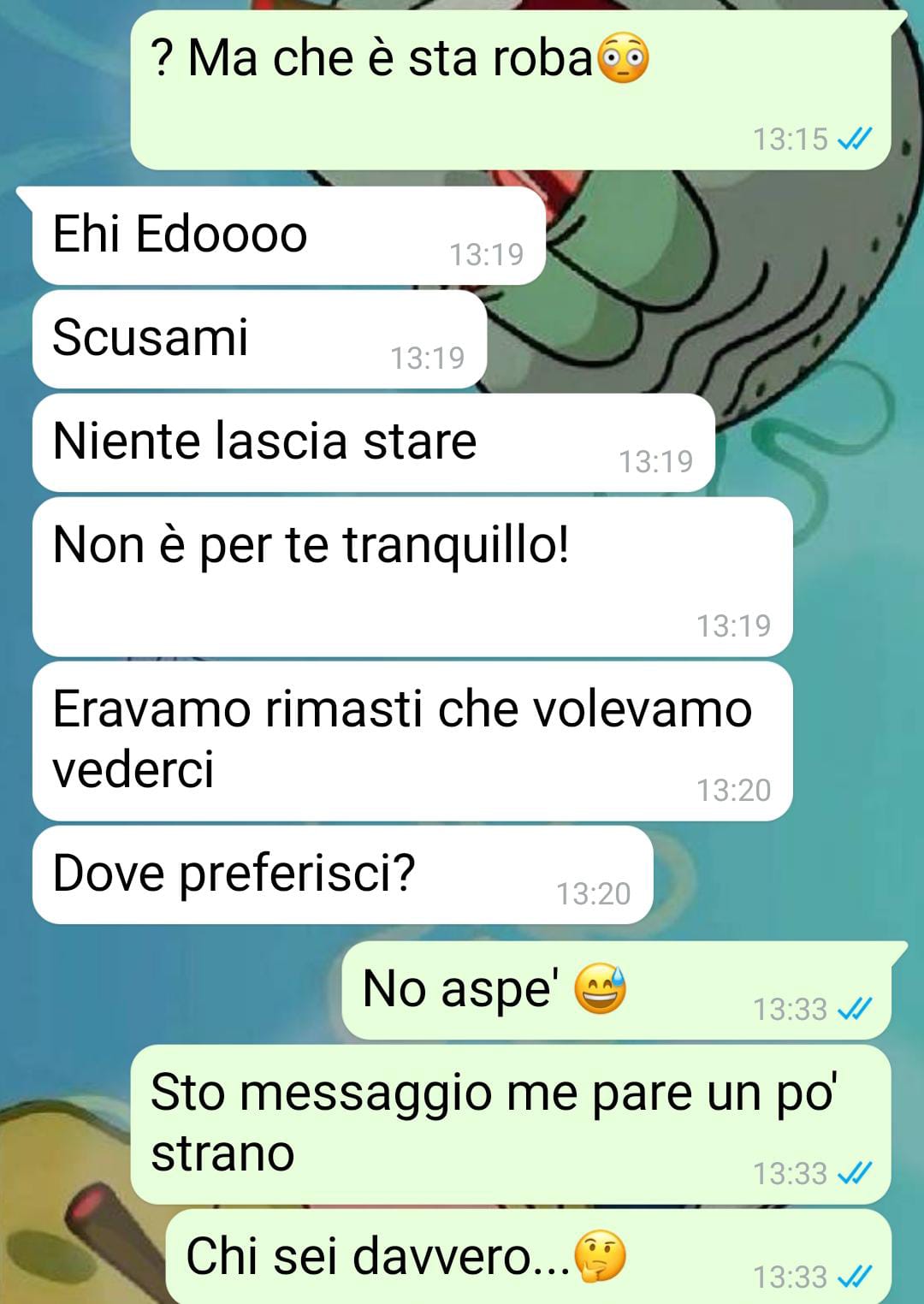 Mi chiamo Edoardo e lavoro come sviluppatore web freelance. Mi gestisco il lavoro da casa o, più spesso, dal bar sotto casa col solito laptop e un mega cappuccino. Niente ufficio fisso, a me va bene così. Per quanto riguarda le relazioni… beh, l’ultima seria risale a un po’ di tempo fa; quindi, ora me la prendo con calma. Mi piace conoscere gente nuova, ma senza troppe aspettative. Ho capito che in ste cose è meglio nun avecce fretta.Sono uno che scherza parecchio, e non mi prendo troppo sul serio, però anche io ho un limite… Qualche giorno fa ho iniziato a chiacchierare su Messenger con ‘sta ragazza che avevo conosciuto in un gruppo su Facebook. Tutto tranquillo, chiacchiere leggere, niente di strano. Però lei m’intrigava, c’era qualcosa di diverso. Poi, a un certo punto, mi dà il numero e penso: “Oh, ok, facciamo ‘sto passo”. Così passiamo su WhatsApp.Da lì, ho cominciato a pensare che la cosa stava diventando interessante, ma non mi aspettavo quello che è successo subito dopo. Dal primo messaggio, già ho capito che c’era qualcosa di strano sotto… e ve lo dico, è stata solo l’inizio di una storia che m’ha lasciato parecchio perplesso.