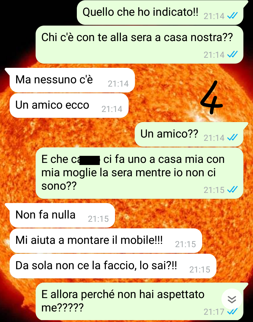 Sono Gaetano e sto divorziando. E che vi devo dire: è andata così! Allora la mia storia è molto semplice, quasi banale. Io per lavoro viaggio tantissimo, sono sempre in giro. Per questo motivo mia moglie Annalisa si trova spesso a stare da sola a casa nostra: lei patisce questa cosa e si lamenta spesso ma, d’altronde, io lavoro mica vado in giro a divertirmi!! Considerate anche che mia moglie non lavora: ha fatto qualche lavoretto, ogni tanto qualcosina fa ancora ma davvero poco.. alla fine tutto si basa sul mio stipendio che da solo mantiene entrambi. Per questo motivo io credo che lei non possa lamentarsi: ok io sono sempre via ma il mio lavoro permette a lei di fare la bella vita e stare a casa a non fare niente quindi.. francamente io credo che un minimo dovrebbe essermi grata invece di stare sempre a lamentarsi!! Perché Annalisa questo ha fatto negli ultimi anni: si è lamentata. E non ero mai a casa, e non facevo niente quando ero a casa, e non la aiutavo a fare dio sa cosa.. Il mese scorso ha voluto che comprassimo un mobile per lo sgabuzzino che io avrei dovuto montare non si sa quando perché non ho mai tempo. Grazie a quel mobile però ho scoperto una cosa su mia moglie…