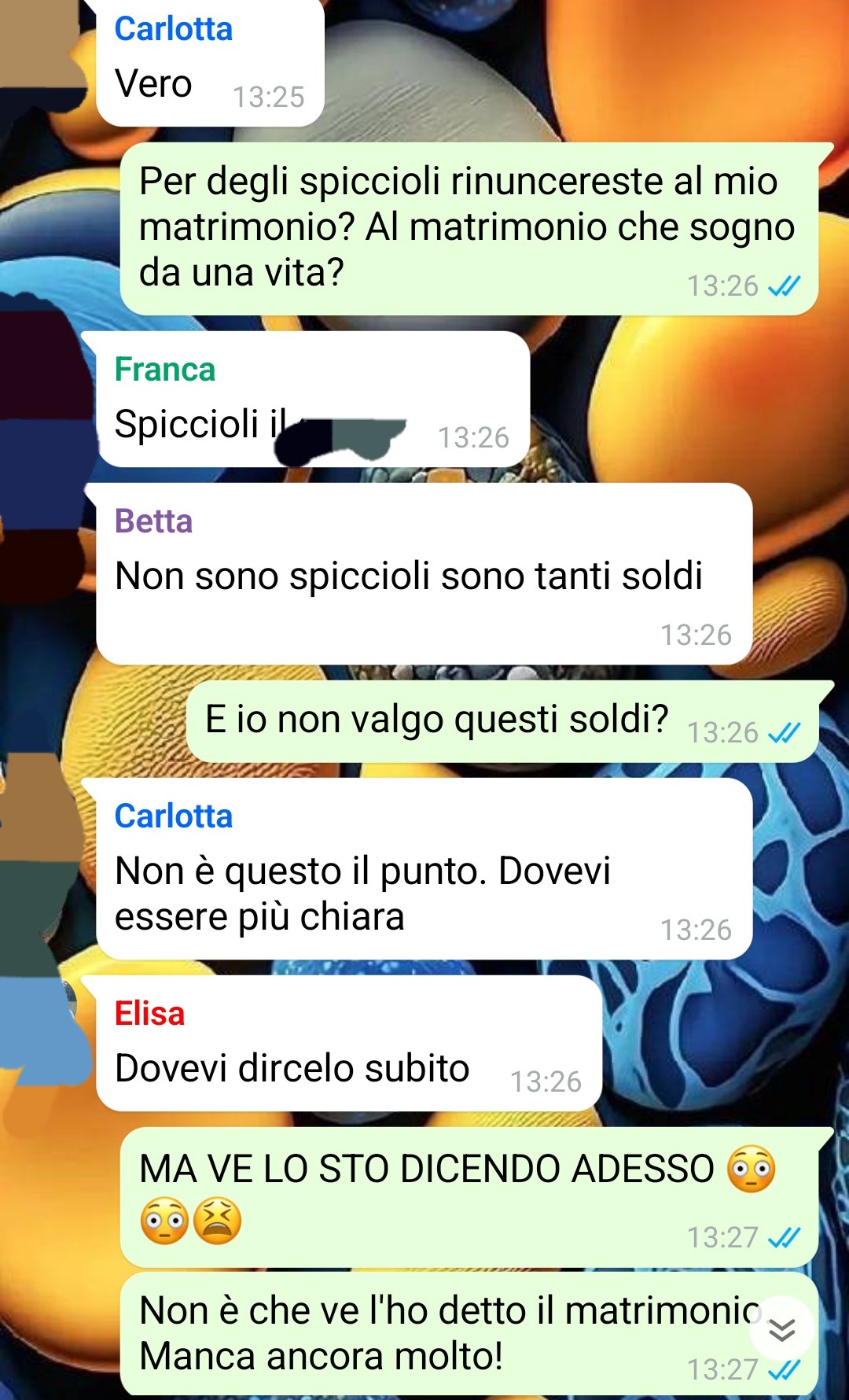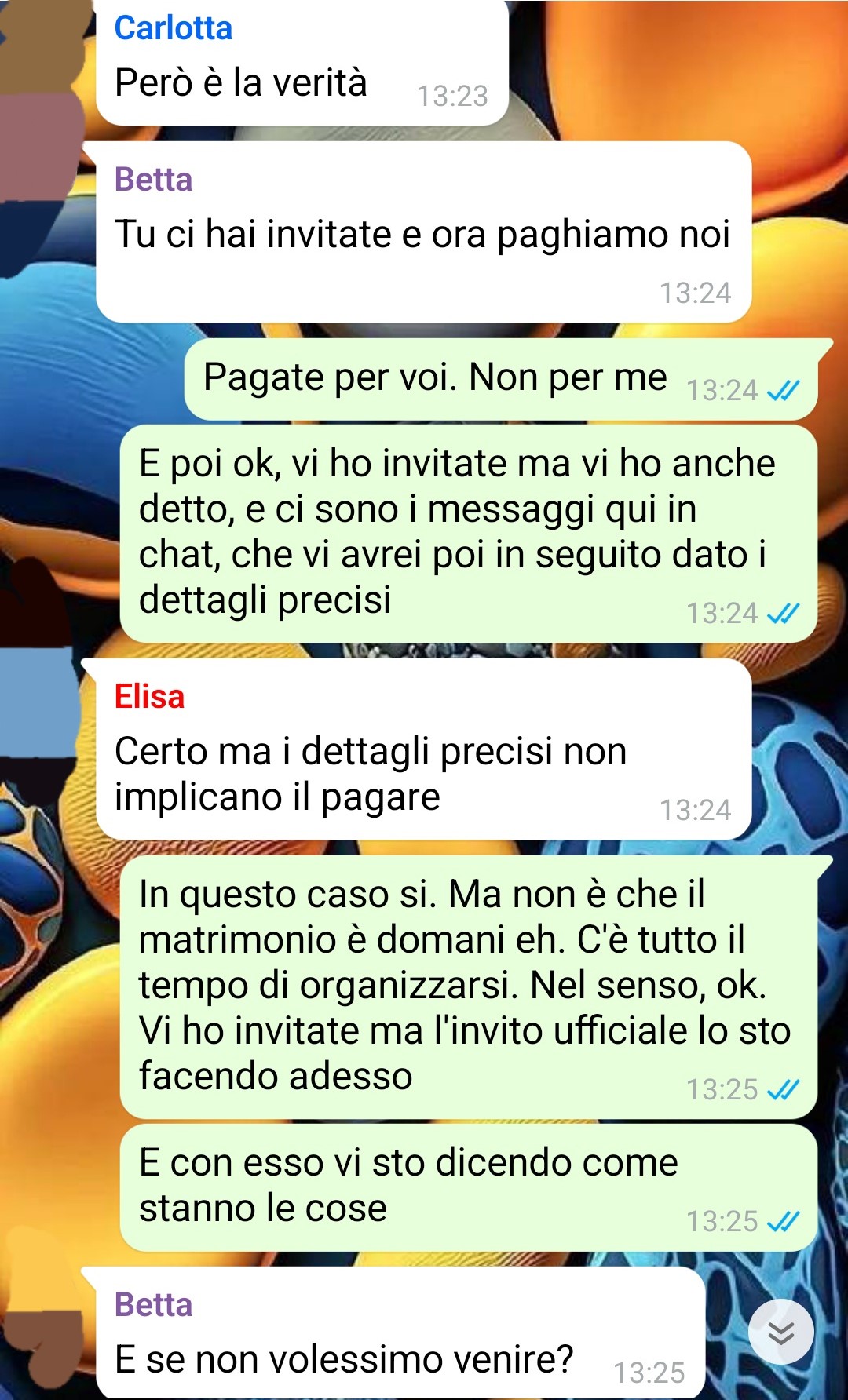 Dopo aver inviato le partecipazioni ufficiali qualche giorno prima, la nostra fan decide di scrivere nel gruppo WhatsApp condiviso con le amiche. Il matrimonio avrebbe avuto caratteristiche particolari e, per correttezza, desiderava informarle subito di alcuni dettagli organizzativi. L’intenzione era semplicemente quella di coinvolgerle e sentirle vicine in un momento così importante.