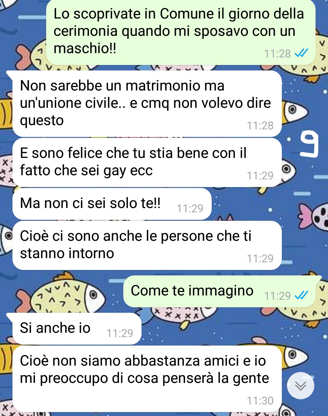 Sergio spiega di aver inizialmente pensato che proprio i suoi genitori potessero avere più difficoltà a comprendere, visto che lo hanno avuto in età avanzata — la madre ha ora 62 anni e il padre 71 — ma invece sono stati proprio loro a sorprendendolo in positivo.